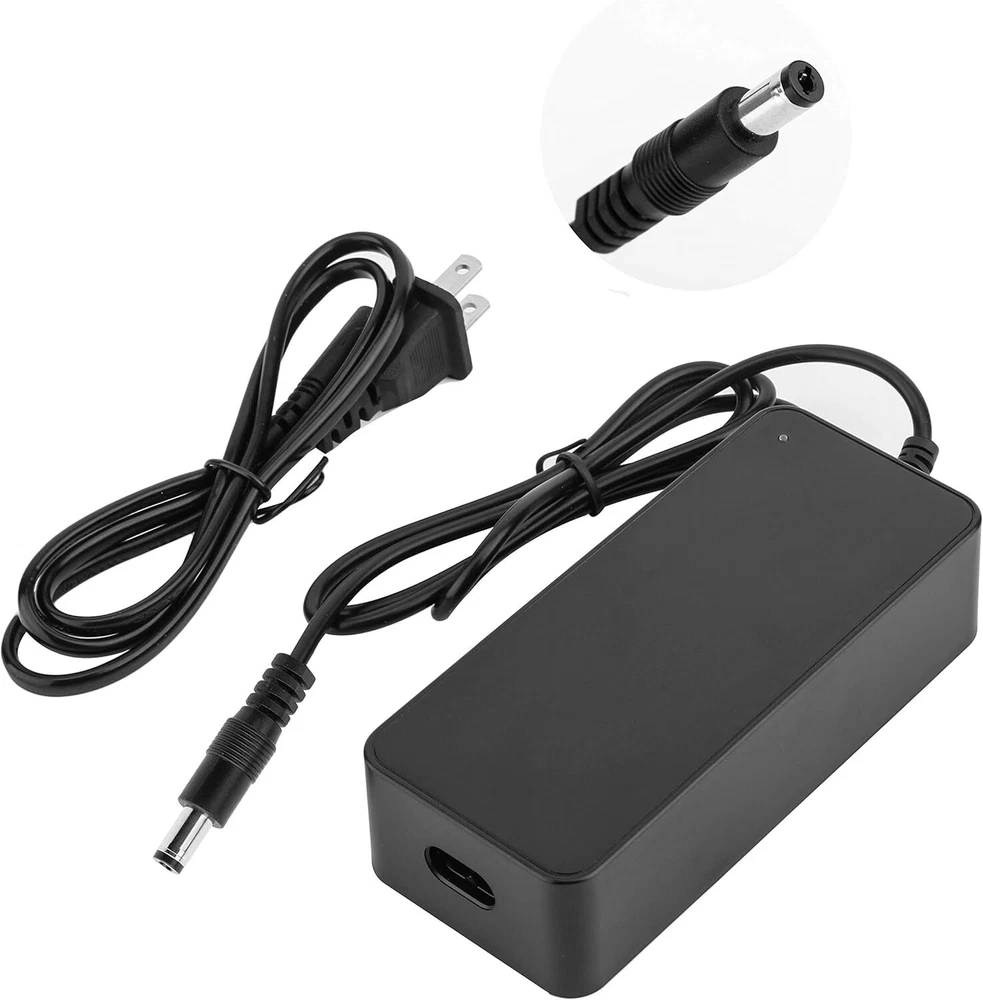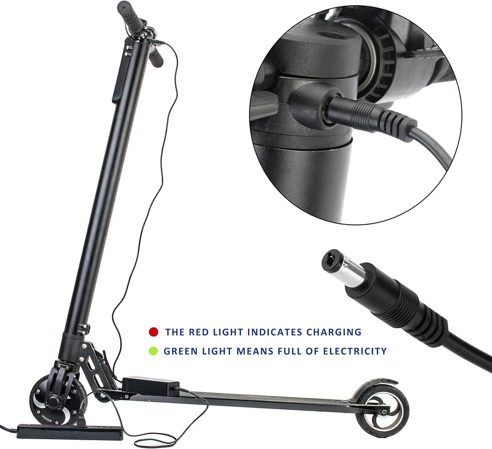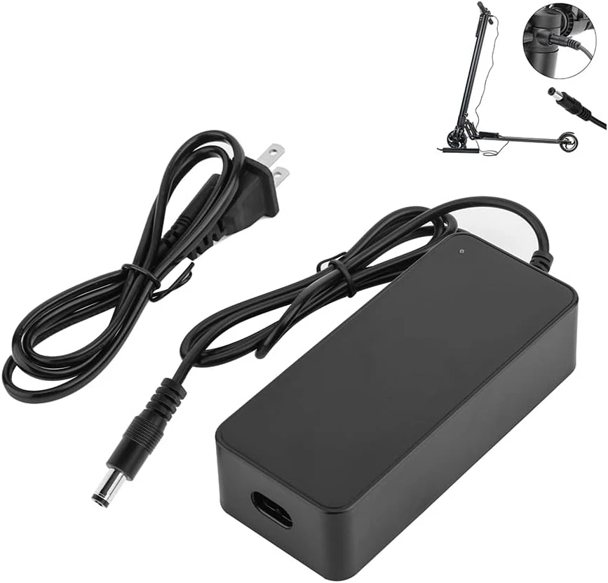 Input: 100-240VAC,50/60Hz,1.5A,Output: 42V 2A Power Max: 84W, 42V 2A( works for 2A,1.5A, 1A,0.5A) Electric Scooter Charger for 36V Lithium-ion Battery NOTE: It is only for the Lithium Li-ion Battery. it is only one pin connector with the outside diameter of 5.5 mm; inner diameter of 2.1 mm Output interface:DC interface. NOT 3-Prong ❌ Connector. NOT for 24V ❌and 25.2V ❌ and 29.4V ❌ version. LED: Red Light: charging, Green Light -- charge OK, it stop automatically when the battery is full. Brand New Replacement Product, works as genuine parts, 100% OEM Compatible! US Power cord included