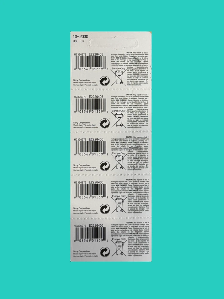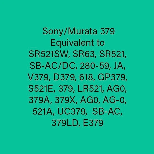 ## Upcoming Time Away Announcement ## The store will be temporarily unavailable between 1/4/2025-2/8/2025. Please make any orders before this period. ============== 5 SONY 379 [EXP 2030] Watch Coin Button Cell Battery SR521SW Ships from CA. Brand New 5 Count Equivalent to : LR521, LR63, SR521, SR521S, SR521SW, SR63, 379, SG0, AG0 Sony SR521SW Maxell Panasonic Seizaiken SR521SW Energizer Rayovac Renata 379 Varta V379 Berec B-379L Bulova 618 Citizen 280-59 Omega 9938 Orient 080-D29 Seiko SB-AC Timex JA Equivalent to SR521SW, SR63, SR521, SB-AC/DC, 280-59, JA, V379, D379, 618, GP379, S521E, 379, LR521, AG0, 379A, 379X, AG0, AG-0, 521A, UC379, SB-AC, 379LD, E379 *** *** NOTE to buyers using forwarding service address *** Unfortunately, we do not ship to a forwarding service address due to frequent delays and lost packages unless Ground Advantage option used. Thank you for your understanding.