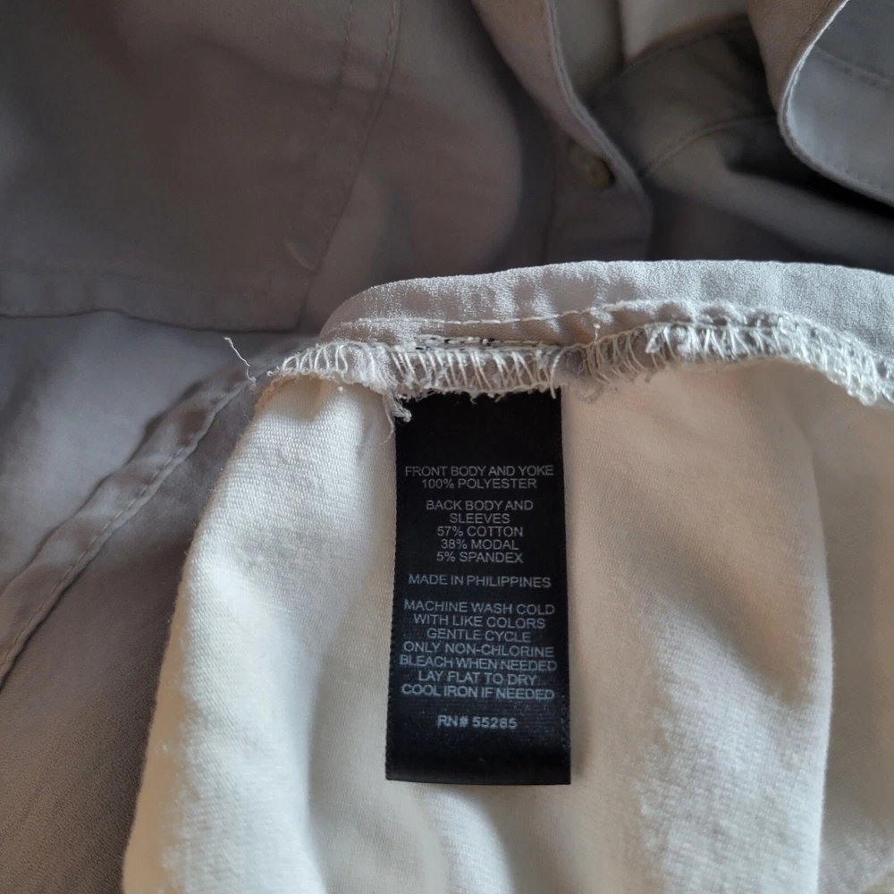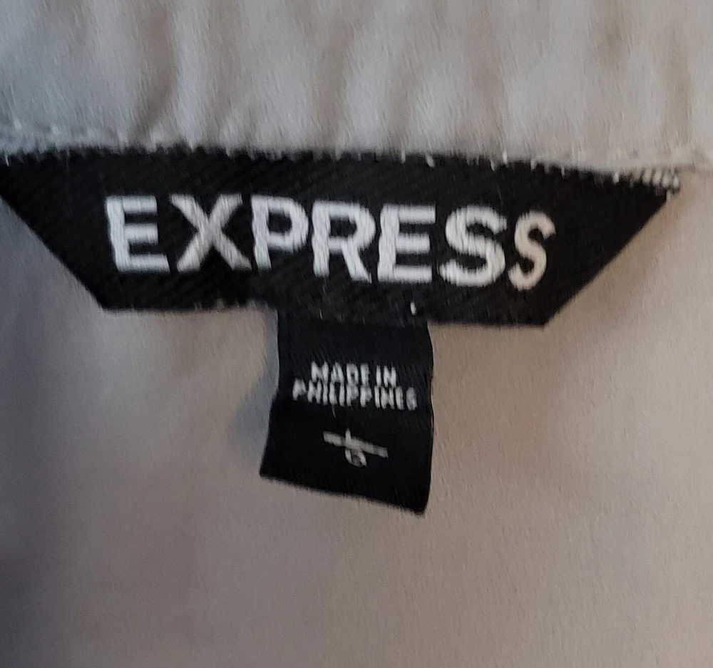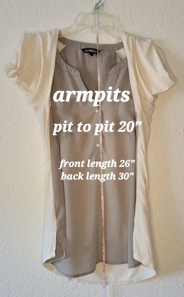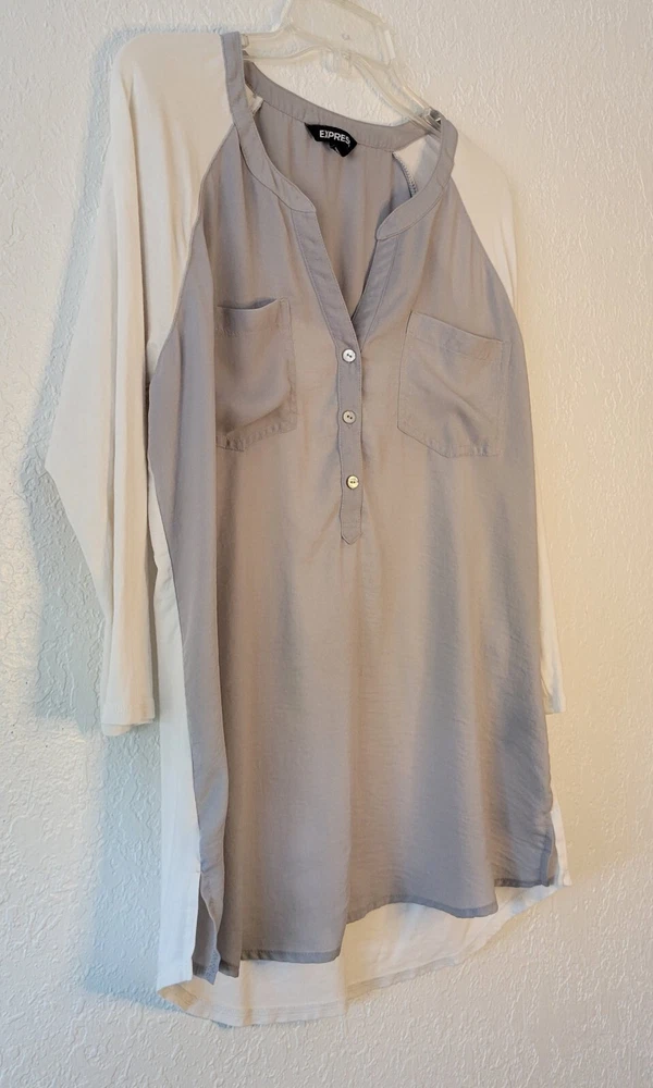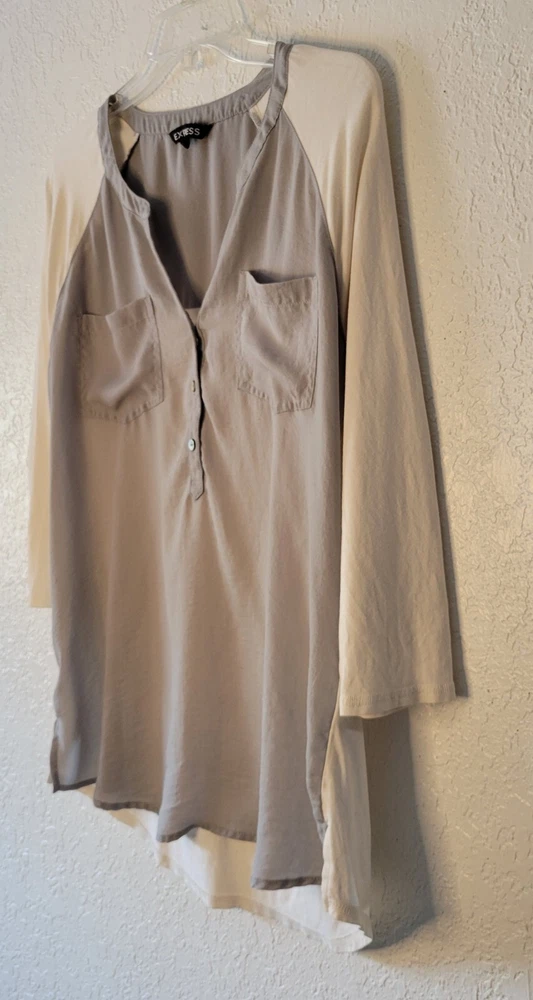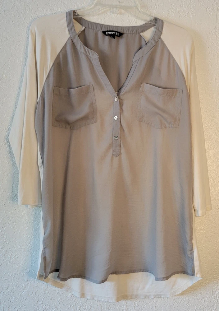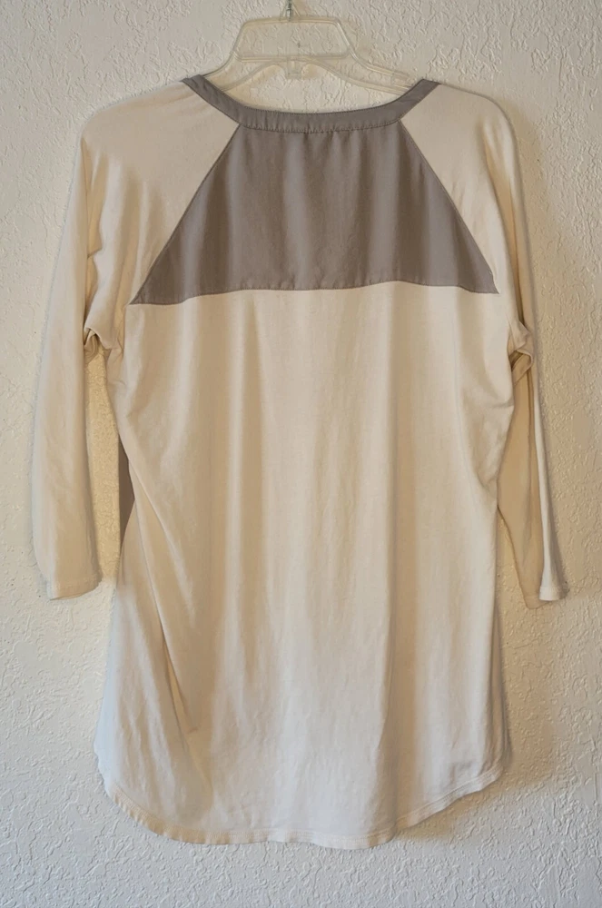 EXPRESS HENLEY STYLE TOP RAGLAN CREAM COLOR 3/4 SLEEVE WITH OLIVE GREEN SZ L.