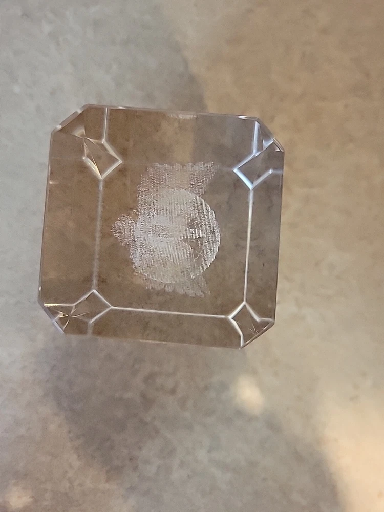 Add a touch of patriotic flair to your desk with this Eagle on Globe Glass Paperweight. Featuring a 3D laser-etched hologram effect, this clear glass paperweight showcases a detailed image of an eagle perched on a globe, making it a unique and eye-catching addition to your collection. Crafted from high-quality glass, this paperweight is both durable and elegant, making it the perfect gift for any collector or office worker. With its intricate design and hologram effect, this paperweight is sure to impress anyone who sees it.