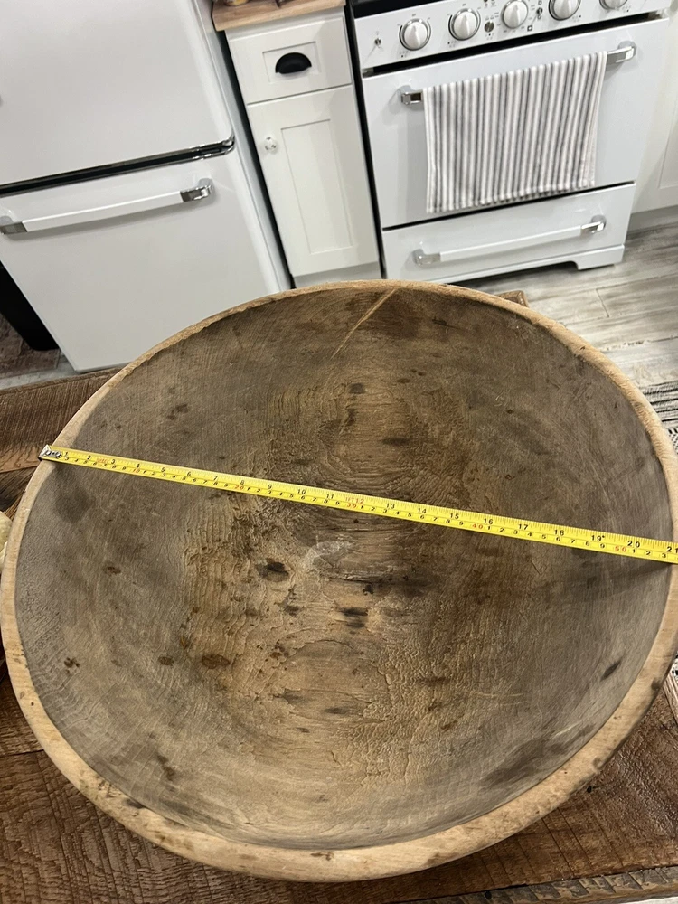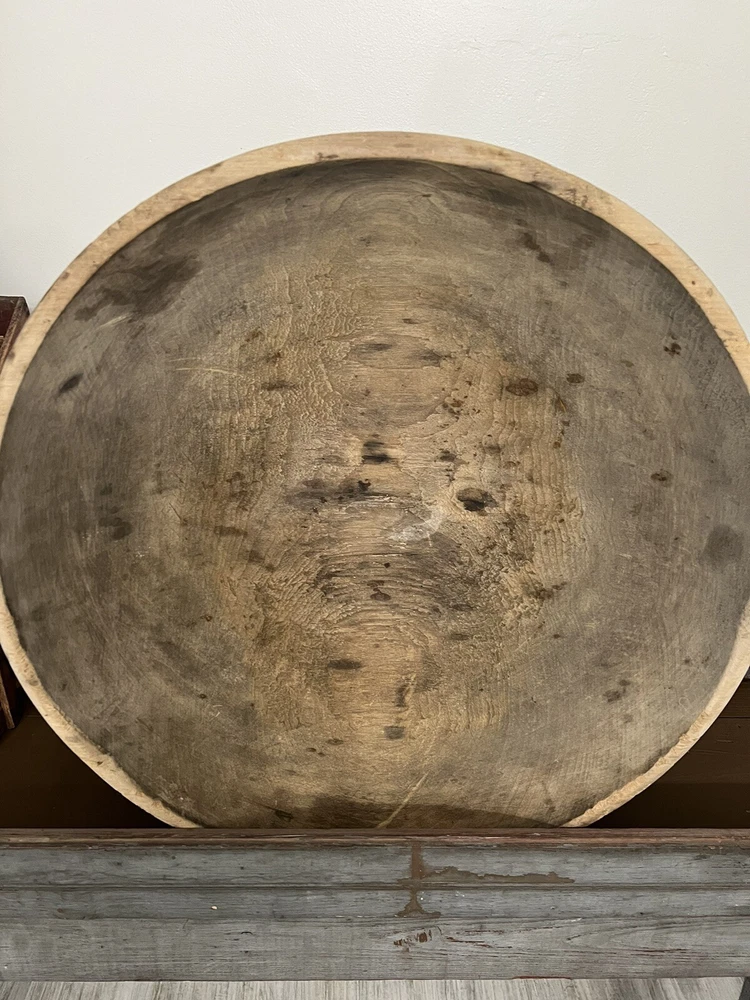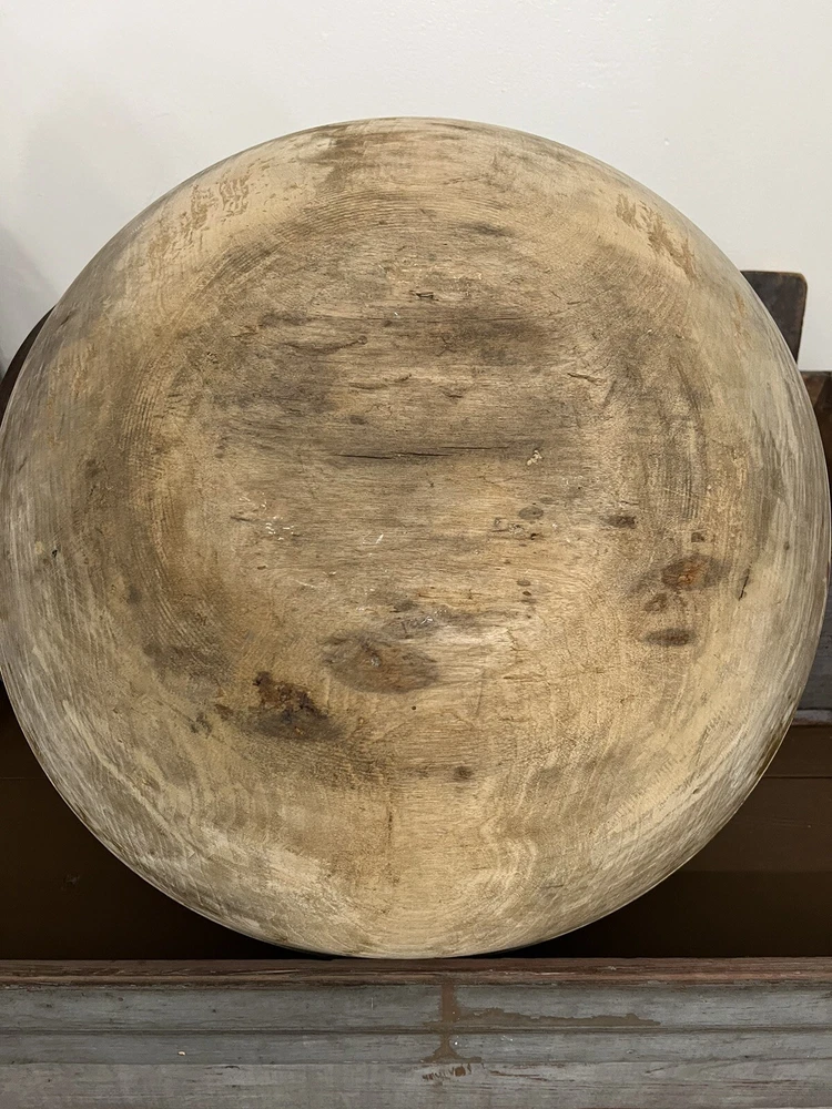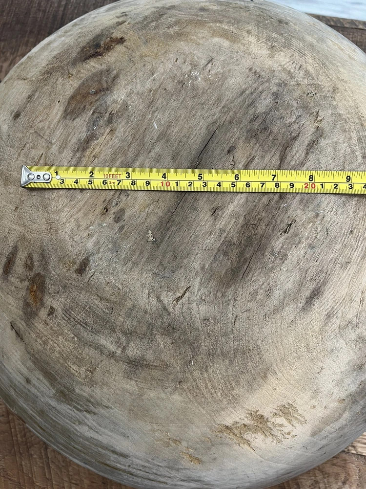 Nice large early wood turned bowl with old dry finish. Lots of wear from usage over the years. Good ole country piece. Please see photos for Approx. measurements as this is a very large bowl! Thank you for looking!