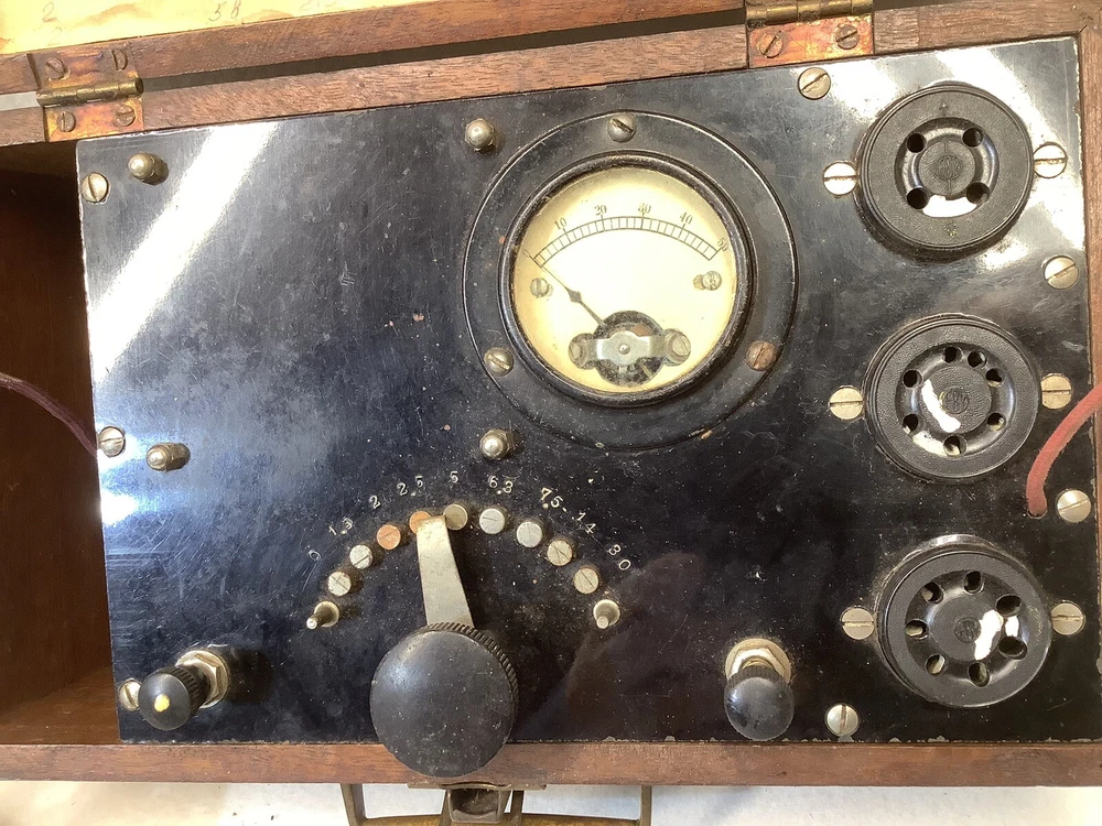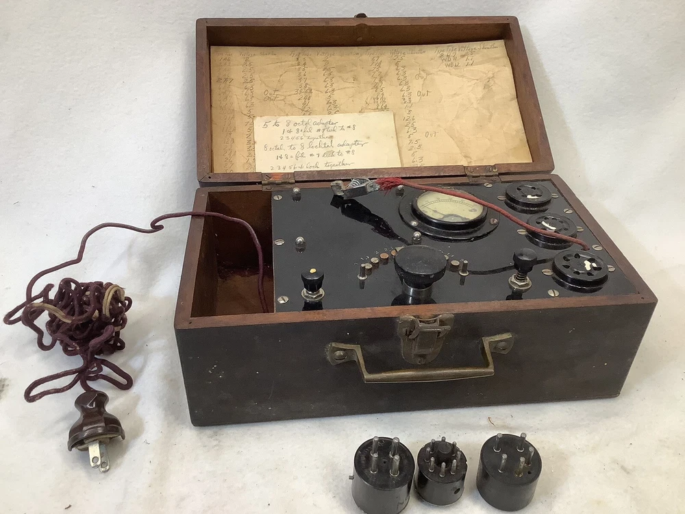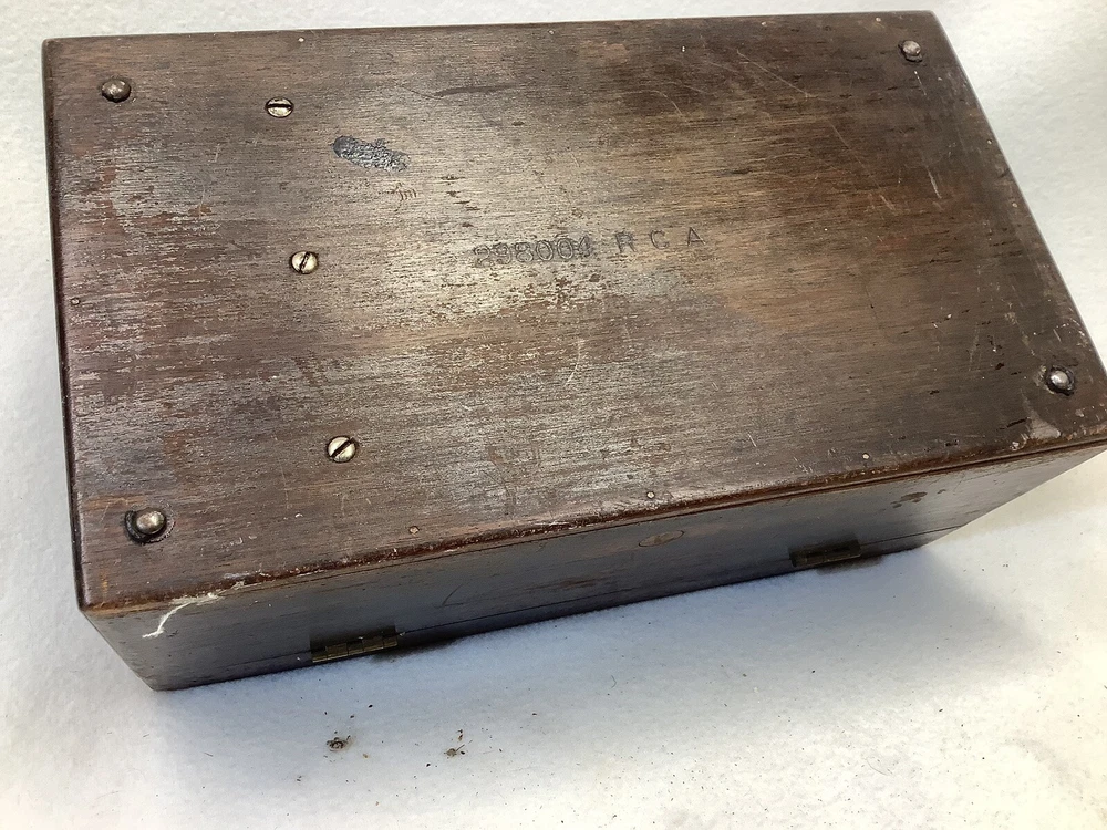 I’m calling this rare because I was unable to find this anywhere on the internet or eBay. The only makers mark is the engraving RCA 298804 on the bottom. The meter is in named and it’s very basic in look. Lots of notes and handwritten readings. Flat rate shipping in USA $15. Untested. Measures 12” x 7” x 4 1/2” tall.