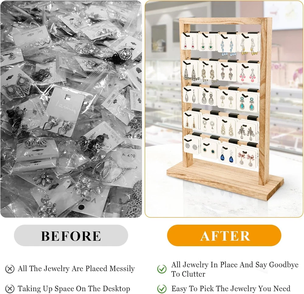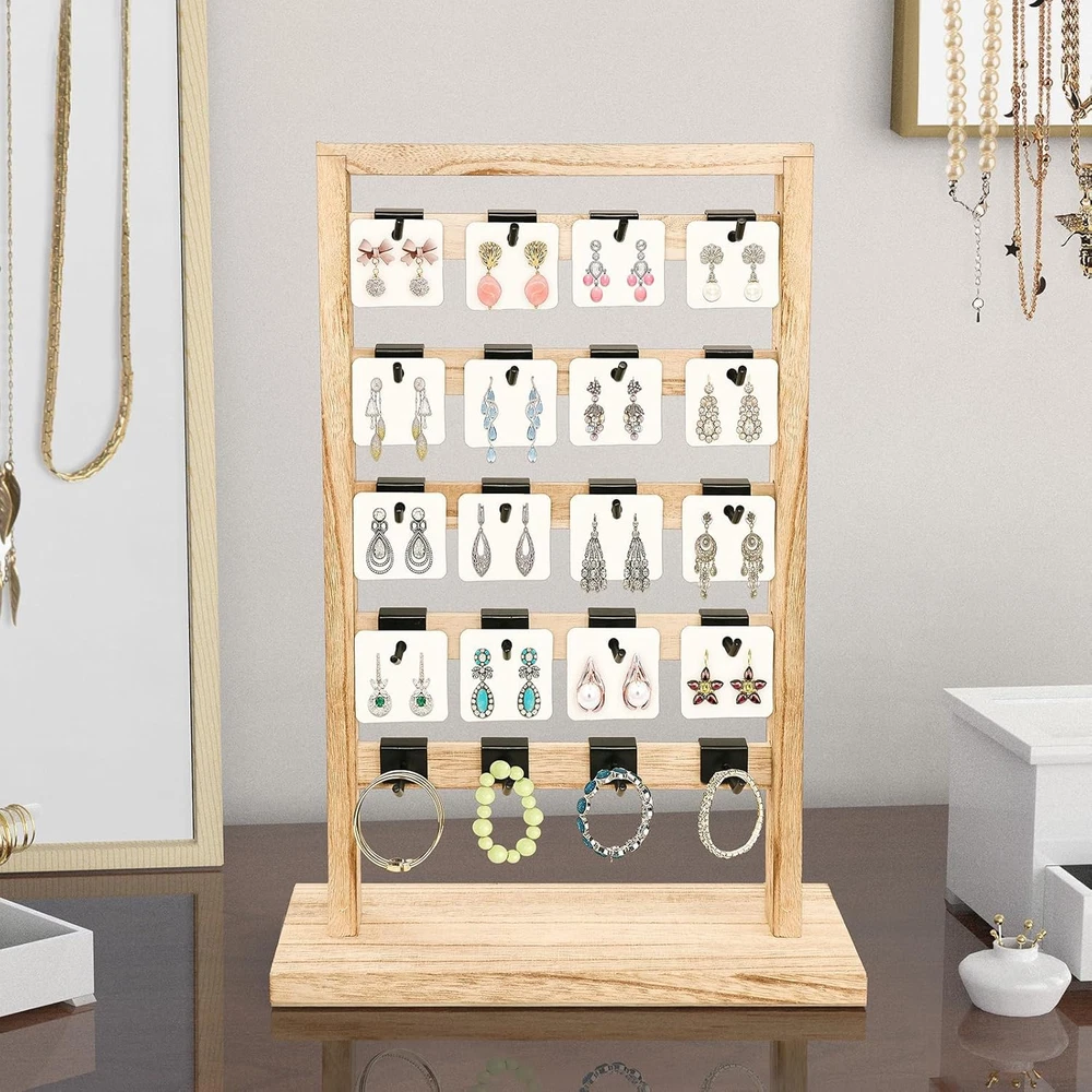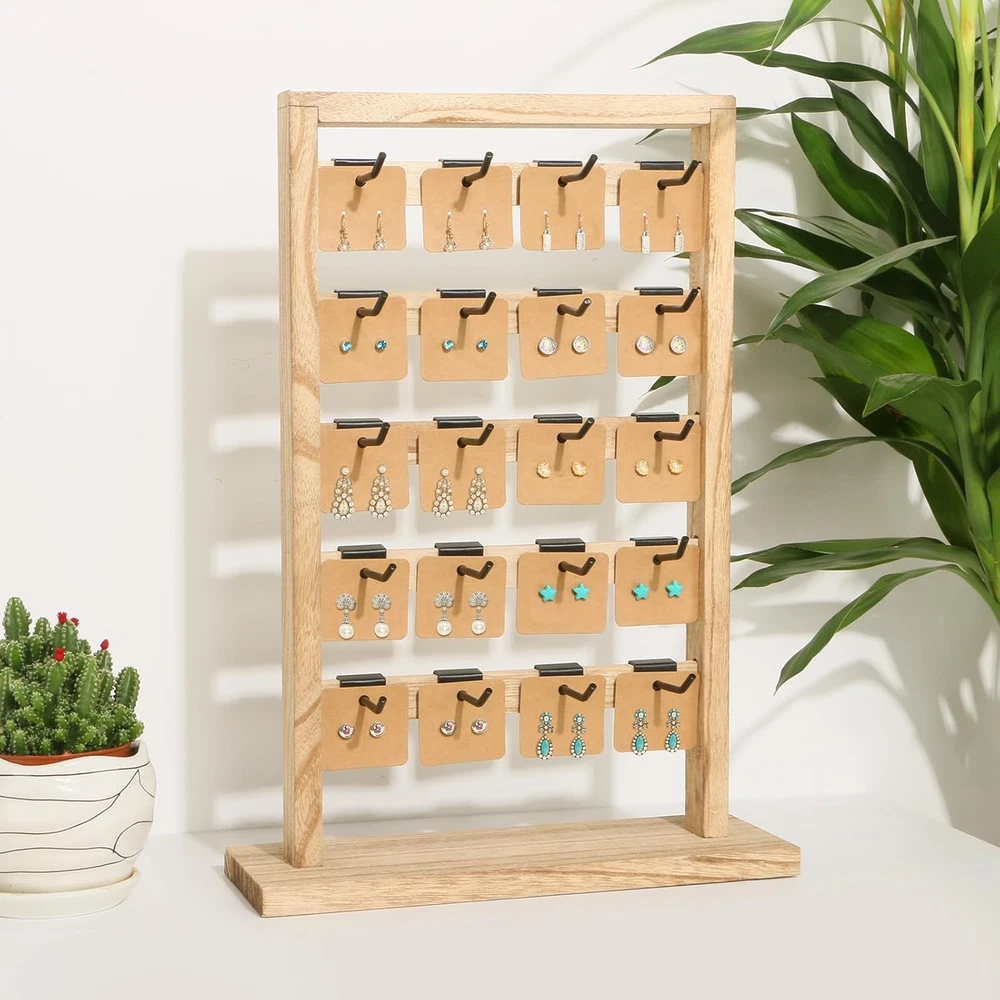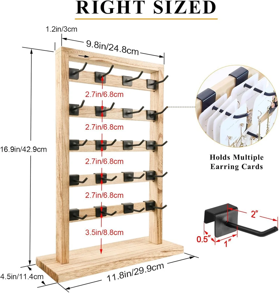 Store New Arrivals Add to Favorite View Feedback Contact Earring Display Stands for Selling, Wooden Jewelry Display Rack with 20 Removable Hooks, 5-Tier Jewelry Organizer for Earring Cards, Necklaces, Bracelets, Keychains(Oak Color) Description Style Rustic Number of Items 1 Closure Type Hooks Batteries Included? No Jewelry Storage Type Jewelry Stand Batteries Required? No Number of Compartments 1 Special Feature Portable, Easy to Install, Lightweight, Large Capacity Product Dimensions 11.8"D x 4.5"W x 16.9"H Material Wood Finish Type Painted Item Package Quantity 1 Item Weight 12.5 ounces Finish Painted Occasion Mother's Day, Engagement, Wedding, Birthday Special Features Portable, Easy to Install, Lightweight, Large Capacity Target Audience Women Mounting Type Freestanding Color Oak Color Inner Material Metal Shape Rectangular Recommended Uses For Product Earring EARRING DISPLAY: Perfect jewelry display rack provide more earring storage space to organize and display earring, necklace, studs, rings and so on. This jewelry holder organizer to help and increase your retail store and trade show turnover. HIGH QUALITY MATERIAL: The earring display stand is made of 100% natural wood, light texture, smooth surface, solid and stable. The rustic wooden display stand with farmhouse style that enhances the visual appeal of jewelry presentation. It's perfect for displaying earring cards. SPACE-SAVE: This jewelry display stand has 5-tier with 20 removable metal hooks, can hold up to 60 pairs of earrings. Space-saving design allow you to keep your favorite jewelries at your fingertips.Earring organizer dimensions is 11.8"L x 4.5"W x 16.9"H. EASY TO ASSEMBLE: The installation method of this earring card display holder is very simple. Only takes 10 minutes to will get a high-end, beautiful display stands to properly display your jewelry. WIDELY USED: Wooden display stand is suitable for most occasions and festivals such as trade shows, crafts fairs, farmers' markets, events, weddings, parties, shops, Christmas, Thanksgiving, Valentine's Day, etc. TIPS: Accessories are NOT included. Product Description 1 Vendor Events 2 Jewelry Store 3 Fashion Show 4 Home Decor Has 20 Metal Hooks Hooks have a 45°upward angle design to prevent items from slipping off. Each hook can accommodate about 4-5 earring cards. Enhanced Display 5 Bars on each side for maximum storage capacity. It provides ample room to exhibit a diverse selection of products. Solid Base The right-angle design of the base is more solid and won't tip over easily. Natural Wood Finish The stand is made of wood and is sturdy enough to ensure long-lasting use. The chic and minimalist design allows to see your jewelry at a glance. Whether it's your friends, vendors or yourself, whether it's Valentine's Day, Birthday, Thanksgiving or Christmas, this stand will be a special choice. Perfect display rack to help and increase your retail store and trade show turnover. ABOUT US We offer the best prices around on high quality products. Our E-store includes media such as books, movies, music and games while offering electronics, toys, sporting apparel, clothing, tools, general home, garden items and more. SHIPPING We are always working hard to ensure your package arrives as soon as possible. Please understand that some factors like weather, high postal traffic, and the performance of shipping companies are outside of our control. We offer free shipping to the lower 48 states and ship within 2 business days of payment, usually sooner. We do not accept P.O. Boxes. Please provide a physical address. For shipping outside of the continental USA, we only use eBay's Global Shipping Program.The item is shipped to KY and then sent to the rest of the world. International customers are responsible for all duties and taxes. Continue to check out in order to calculate costs for shipping the item to your country. Messages regarding eBay's Global Shipping Program MUST be directed at eBay EXCLUSIVELY. RETURNS We offer a 30-Day Return Policy on items which you are not completely satisfied with. You have the option for a full-refund or an exchange of the item. No returns are available on items shipped outside of the USA. PAYMENT We accept PayPal. CONTACT US This page content is yet to come Please ad us to your favorite seller and visit again later Thank You CUSTOMER SATISFACTION We try our very best to make sure every customer is completely satisfied. If there's a problem, message us! We're happy to help. WE ACCEPT Copyright © 2021 AutoDS. | All Rights Reserved