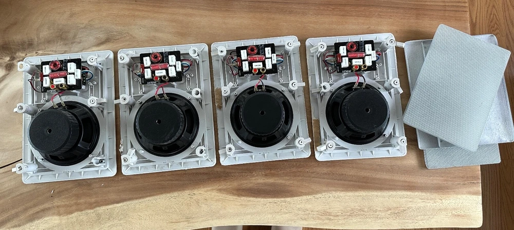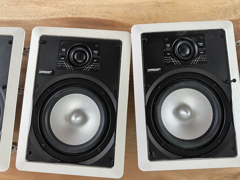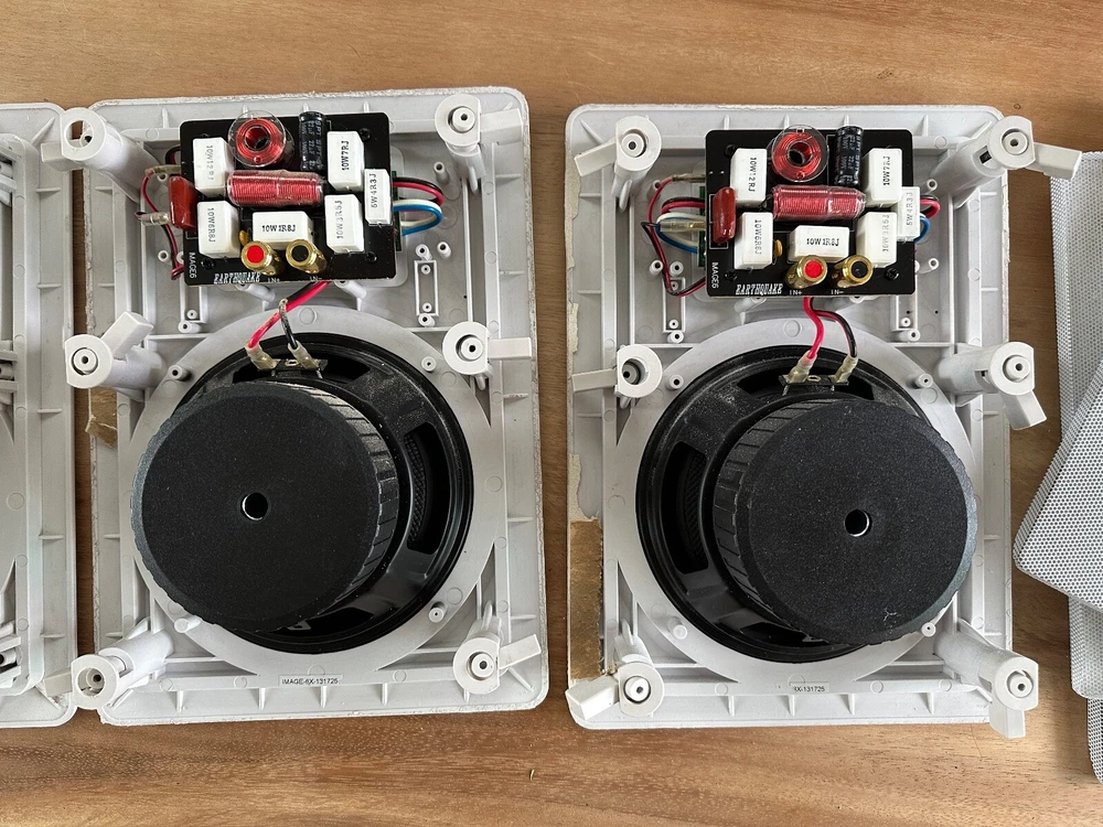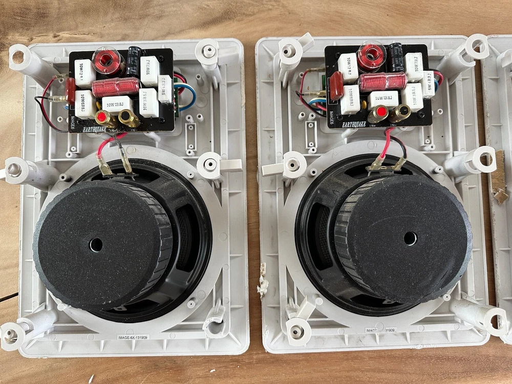 Earthquake Image 6" In- Wall Speakers Speakers x4. With covers and screws. Fully functional and in great condition. We got new speakers so no longer need these. Each speaker measures 8.5in across and 12inch high with the white cover around them. No returns but feel free to ask any questions.