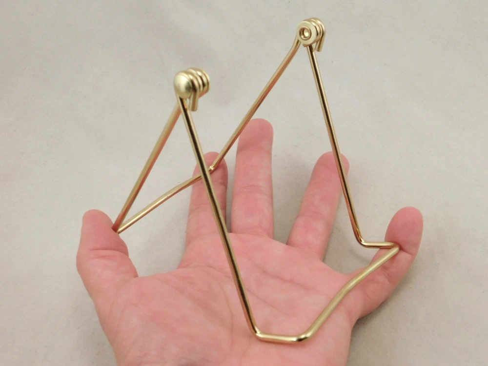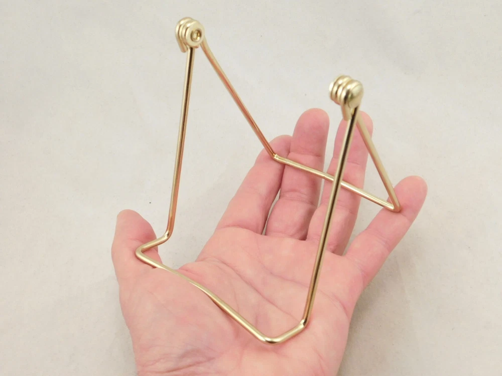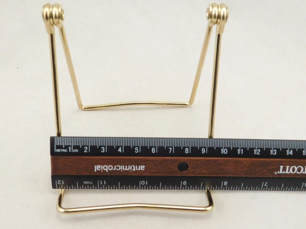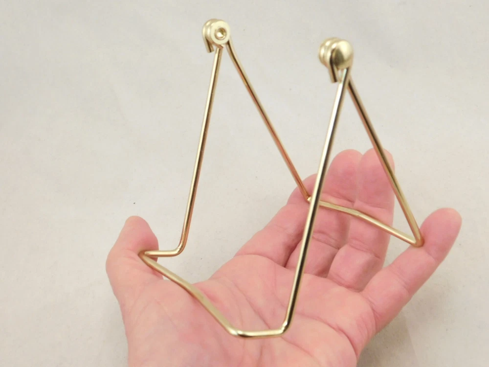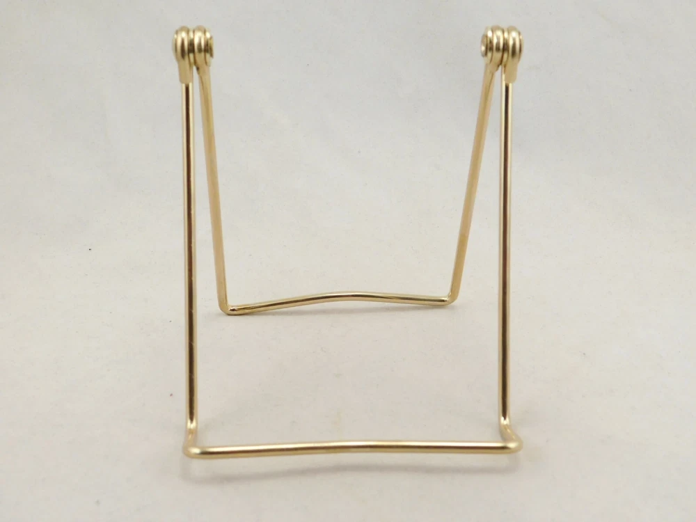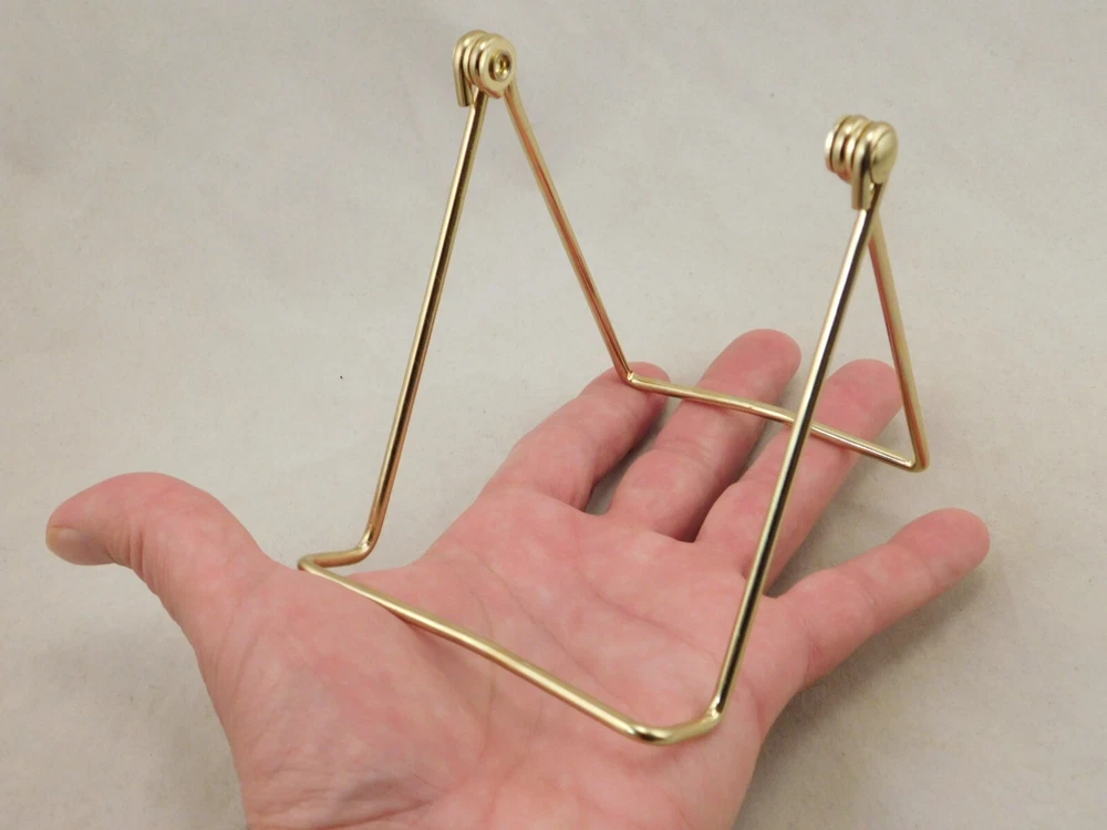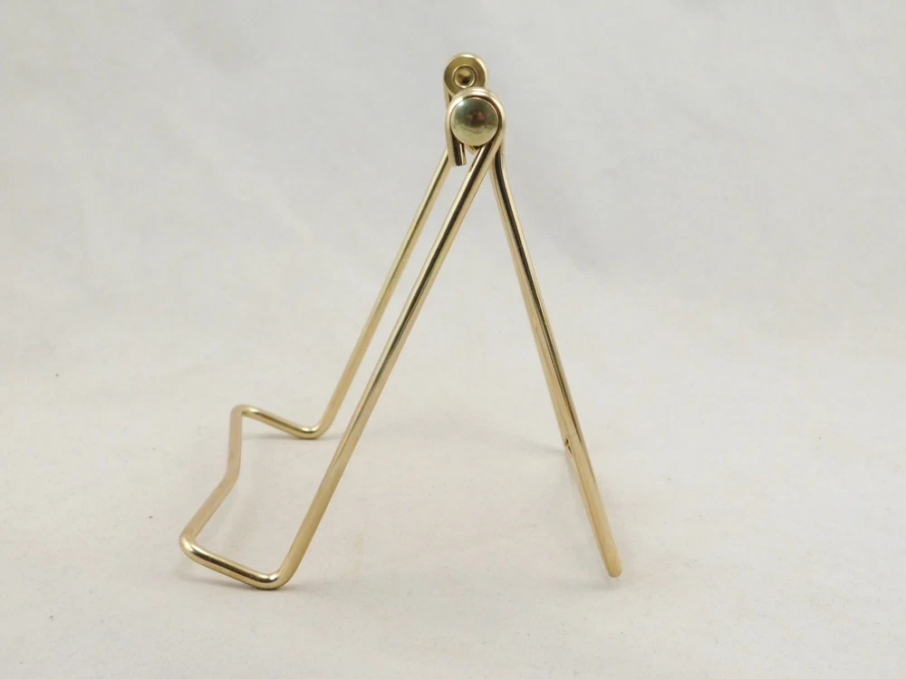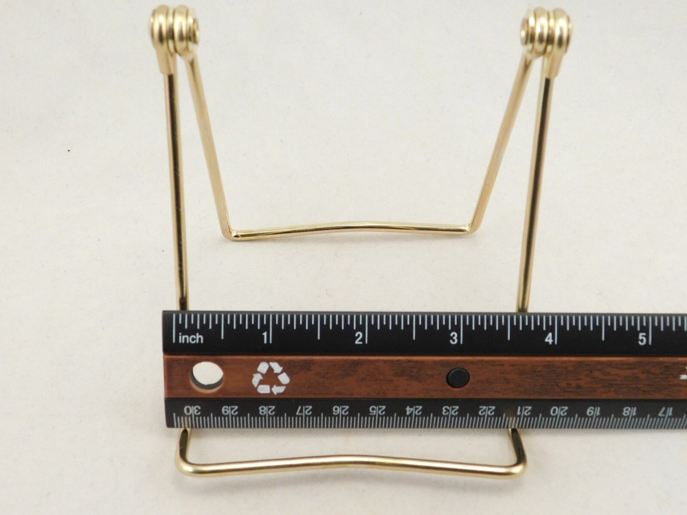 Hello, here is a medium sized gold colored metal folding and or adjustable easel display stand! Great for Pictures, Picture frames, Books, Cards or any other items you may want to display! This stand Adjusts from 2.75" to 4 3/8" tall and it measures 3.75" wide, it Adjusts from 2.75" to 6" deep! The shelf or holding area is 1" wide. Combine and save on shipping! INTERNATIONAL BUYERS PLEASE NOTE: Import duties and taxes are not included in the item price or the shipping charges. These are the buyers responsibility. If you are concerned about them, please check with your country's customs office before buying. RETURN POLICY We guarantee you will be satisfied with your item or we'll refund your purchase price, less shipping charge, upon safe return of the item in original condition within 30 days. Prior to returning the item, please contact us within 48 hours of receiving item. If your item arrives damaged, please contact us within 24 hours of receiving as we will be happy to resolve any issue. Buyer is responsible for all return shipping charges.