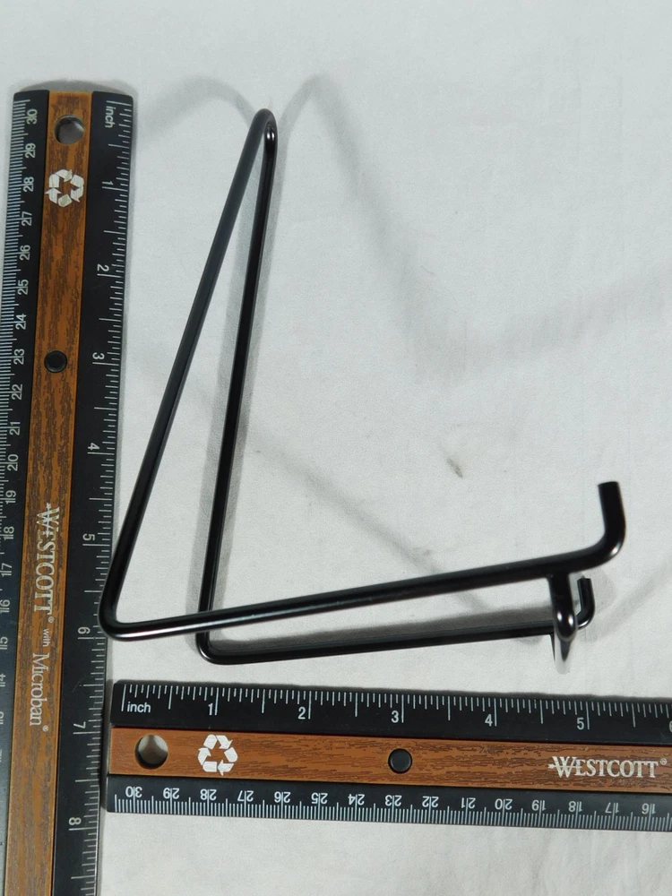 Hello, here is a very sturdy Large sized black colored metal Easel display stand! Great for all kinds of Pictures, Picture Frames, Plates, Books, Mineral specimens, fossils and collectible pieces and meteorite slices. This stand measures 6" tall" by 4" wide by 4 3/8" deep and the shelf or holding area is 3.75" wide. Combine and save on shipping! INTERNATIONAL BUYERS PLEASE NOTE: Import duties and taxes are not included in the item price or the shipping charges. These are the buyers responsibility. If you are concerned about them, please check with your country's customs office before buying. RETURN POLICY We guarantee you will be satisfied with your item or we'll refund your purchase price, less shipping charge, upon safe return of the item in original condition within 30 days. Prior to returning the item, please contact us within 48 hours of receiving item. If your item arrives damaged, please contact us within 24 hours of receiving as we will be happy to resolve any issue. Buyer is responsible for all return shipping charges.