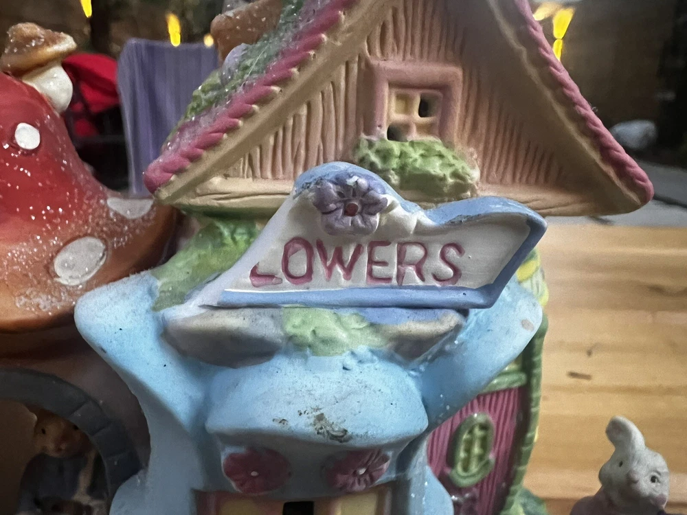 Easter Bunny Rabbit Lighted Ceramic Village Flower Store Bunnies Rabbits Glitter