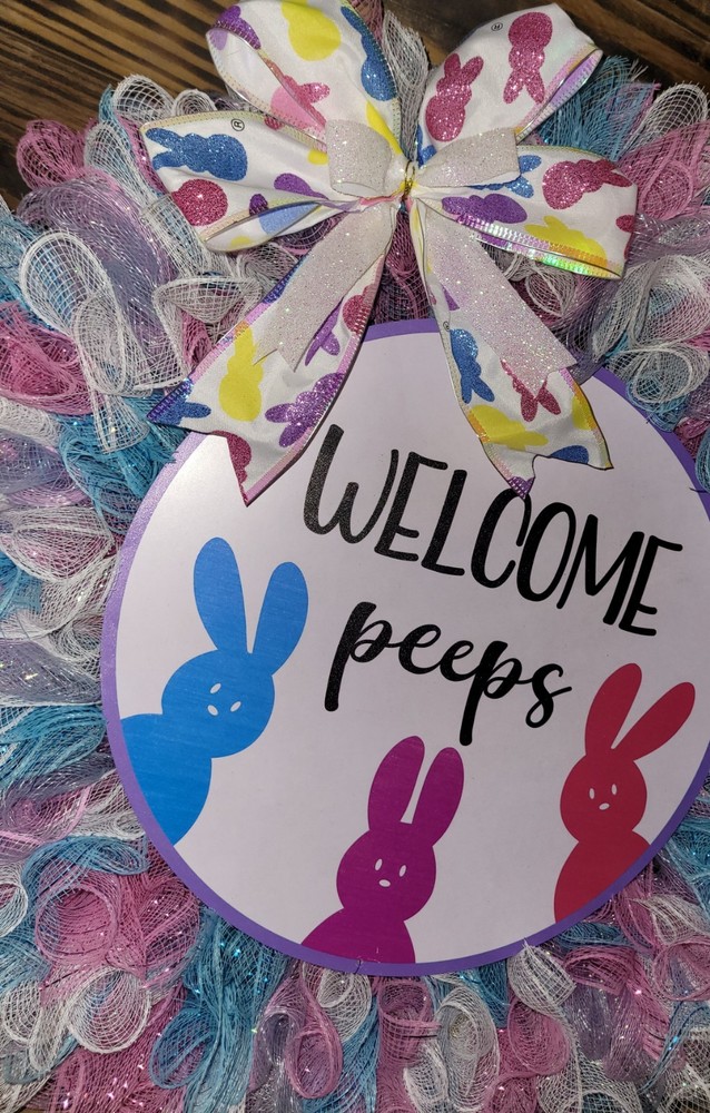 Add a colorful touch to your Easter decorations with this beautiful door wreath from DECO MESH. Made of high-quality fabric, this 18-inch wreath features an array of multicolor peeps that will surely delight your guests. Perfect for any Easter celebration, this wreath is an excellent addition to your holiday decor. Crafted in the United States, this artificial wreath is designed to last for years to come. Its dimensions are 18 inches in height and 4 inches in width, making it the perfect size for any door or window. Get your hands on this stunning wreath now and make your Easter celebrations even more special!