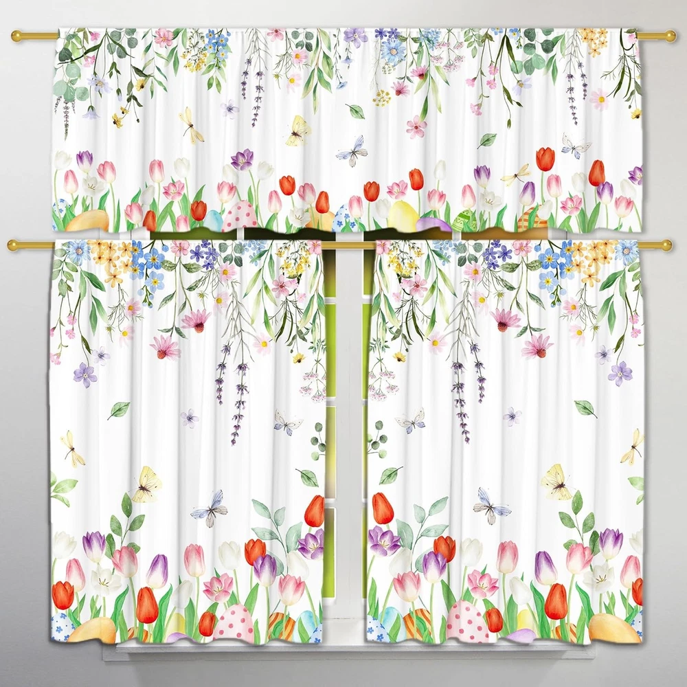 Festive Easter Design: Brighten up your home with these charming Easter curtains! Featuring cheerful tulips set against a vibrant spring backdrop, they bring the lively spirit of Easter into your kitchen or living space. Perfect for adding a pop of festive whimsy to your decor. Ideal Size for Versatile Use: This kitchen curtain set includes two panels measuring 27" x 36" each and a valance 54" wide x 18" long, making it easy to fit standard or decorative curtain rods. Whether for a kitchen, living room, or dining space, these curtains blend effortlessly into your home. Premium-Quality Material for Easy Care: Made from durable 100% polyester fabric, these curtains are lightweight, machine-washable, and easy to maintain. Wash in cold water and avoid bleach to preserve their vibrant colors, ensuring they stay fresh and festive season after season. Perfect for Any Room or Occasion: From daily use to seasonal celebrations, these versatile Easter curtains are ideal for kitchens, dining rooms, bedrooms, or office spaces. Their lively design enhances any decor style��farmhouse, country, or modern��while creating a joyful and inviting atmosphere. Decorative and Functional: these curtains aren��t just decorative��they also serve a purpose! Designed to filter light and heat, they allow natural sunlight to brighten your space while adding privacy and comfort. Whether for your Easter party or year-round charm, these curtains bring style and practicality to any room.