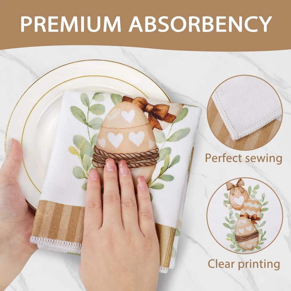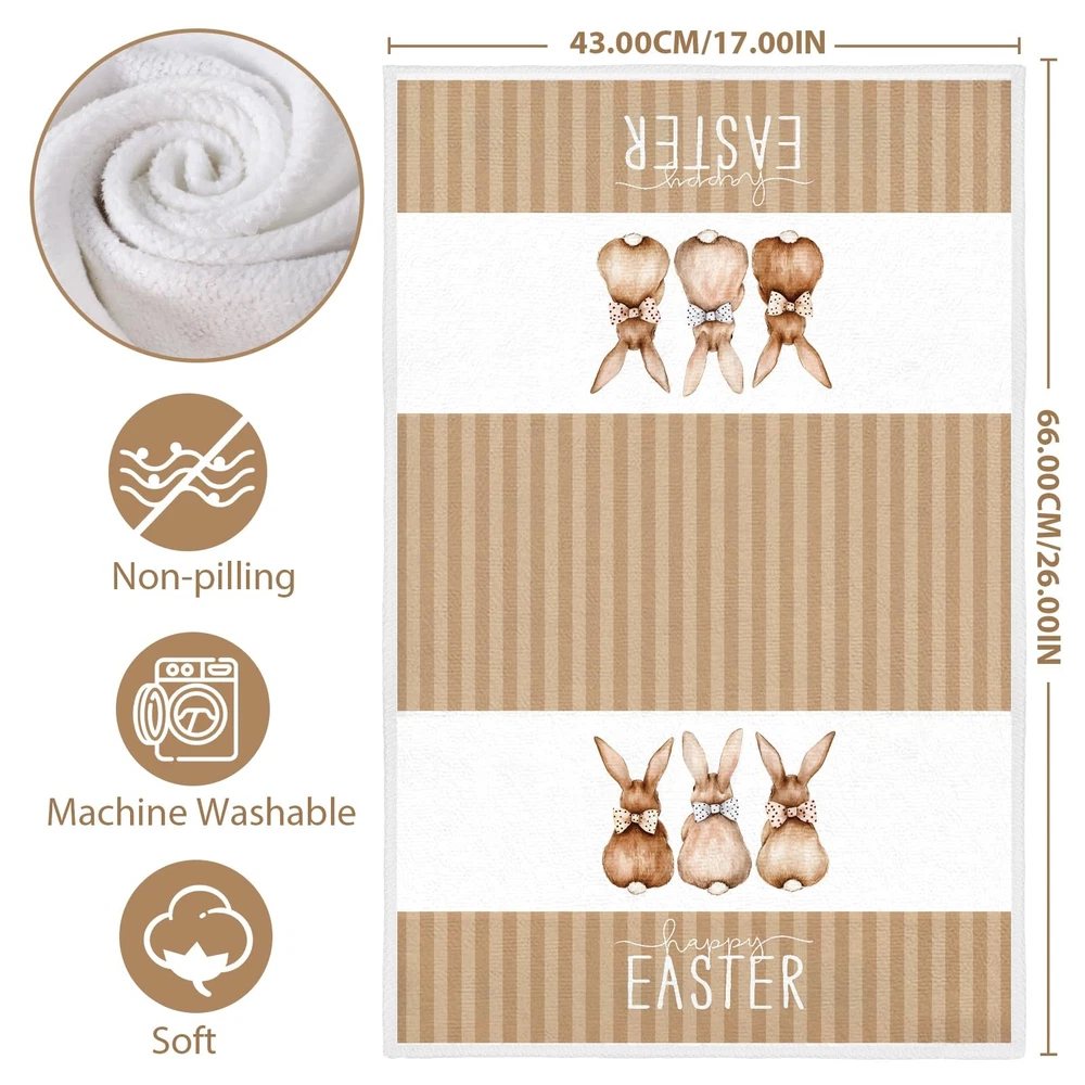 Easter towels for bathroom are the perfect additions to your kitchen decor! Crafted from Soft, absorbent material, these easter bathroom towels not only enhance your kitchen's aesthetic but also serves a practical purpose for all your cooking and baking needs. Featuring vibrant colors and cute bunny designs, our easter tea towels are designed to bring joy to your family. The easter bath towels can decorate your kitchen. You can hang it on the drawer handles, oven handles or hanging racks in the kitchen, which is easy to access and creates a strong festive atmosphere. And it can also be used as a gift for friends, family members or people who like cooking to express the blessing and care. In addition to the beautiful appearance, these easter bath hand towels have excellent water absorption and durability. It absorbs water quickly and is very practical when washing hands, wiping dishes or cleaning the kitchen. At the same time, after special treatment, the easter towel has a high degree of color firmness, even after repeated washing, it can still maintain the original bright color. Durable and easy to care for, our easter hand towel is machine washable, ensuring it remains fresh and vibrant throughout the season. Whether you're drying dishes, wiping down countertops, or adding a decorative touch to your kitchen, this towel is the ideal companion for all your culinary activities. Transform your kitchen into a beautiful garden with our easter kitchen towel—where style meets functionality. Embrace the season and let this charming accessory embody your love for Easter! Easter Kitchen Decor: These easter dish towels are specially designed for Easter, featuring exquisite Easter patterns such as bunnys, leaves and eggs, decorating your kitchen to create a festive atmosphere. High Quality Materials: Easter towels are made of soft and durable materials with good water absorption and breathability, which can efficiently absorb moisture and stains, ensuring the cleanliness of your kitchen. Multi Functional: The easter towels kitchen are of moderate size and suitable for most occasions. They can be used as hand towels, dish towels, as well as for cleaning workbenches, appliances, and tabletops in kitchens, homes, bathrooms, farmhouses, and other places. It can also be placed under a hot tea cup, teapot, or plate to protect the tabletop. Easy to Clean: This easter hand towels are easy to clean, just add a small amount of detergent and gently rub to make it clean, and can withstand multiple washes to maintain its bright color and soft texture. Easter Hostess Gift Ideas: The easter dish towel for kitchen is a good gift choice that will come in handy when you visit your neighbors and friends during Easter. It is also suitable as a housewarming gift for daughters, sons, granddaughters, grandsons who have just started a new family.