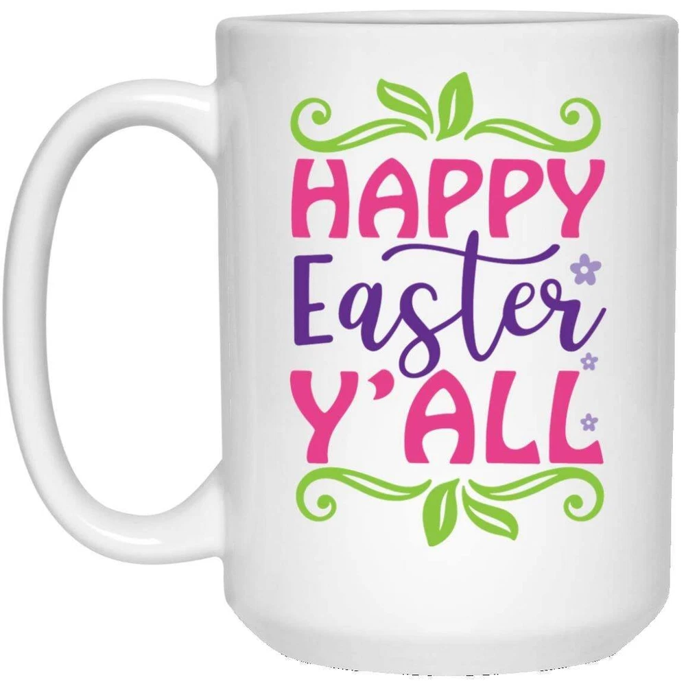 Easter Mug Happy Easter Y'all Coffee Mugs Gift For Mom Dad Grandma Grandpa Product Details.. This high quality 11oz. ceramic white mug has a premium hard coat that provides crisp and vibrant color reproduction sure to last for years. Perfect for all hot & cold beverages. The highest quality printing possible is used. It will never fade no matter how many times you wash it. Material: 100% Ceramic. Print both sides. Dishwasher and Microwave Safe. High Gloss + Premium White Finish. Printed in the U.S.A. Personalized & Custom. We support personalized and custom mug to add custom, when placing an order, you can add notes to the "order note" in shipping address section. Also you can contact us directly via message. Shipping Info. Ready to ship in 1 to 2 business days, All products are made-to-order and proudly printed in the United States. Shipped by USPS and DHL, You will receive your order in 5-7 days. Replace & Refund. All products are defective during shipping broken, chipped will be replaced free of charge. You are not satisfied with the product, we will refund 100% money to you. If any other issues arise, please do not hesitate to message, we would be more than happy to assist you.