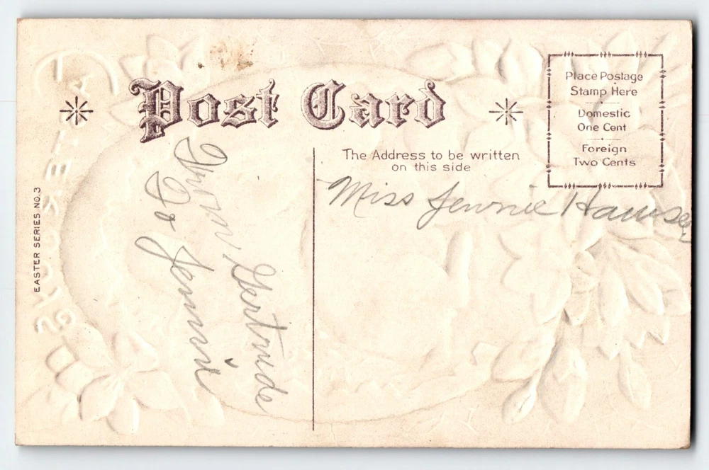 Unposted. Antique original vintage post card. Has some paint wear, corner dings, and age wear. Stock #eas277. Additional postcards are in our store. All post cards are old originals and may or may not have writing on back. Bundle and save by using cart and making single payment.