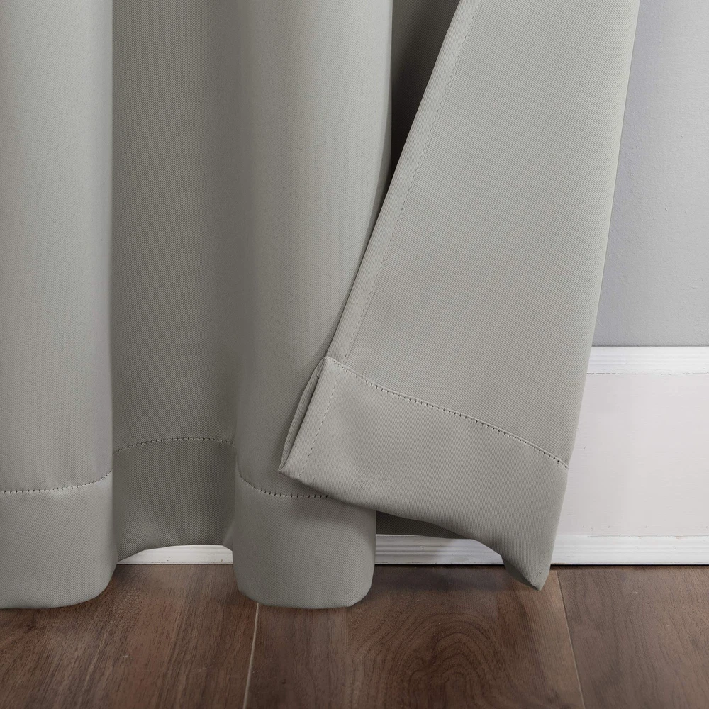 Blackout technology blocks out most unwanted light while enhancing privacy Energy efficient design reduces energy lost through your windows by up to 25% Thermal properties help keep summer heat and winter chill out of your home Noise reduction up to 25% helps you get a sounder, more uninterrupted sleep Built-in metal grommets fit curtain rods up to 1.5" in diameter Each panel sold separately. (Image features 2 panels) Panels sold individually. Measure carefully prior to purchase. (Image features 2 panels) Performance varies by product color; darker the base color the more light blocked Note: Depending on the brightness on the computer, color may look slightly different