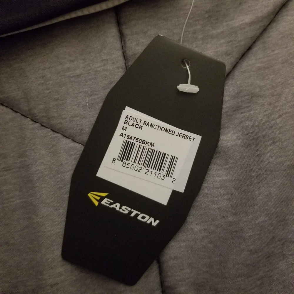 This Easton jersey is the perfect addition to any high-performance athletic gear collection. Made of 100% polyester jersey fabric, it is lightweight, breathable, and easy to care for with its medium wash. The classic/fitted short sleeves and button-down collar make it suitable for both casual and competitive activities, such as baseball and soccer. Featuring a solid black & white color with an Easton logo accent, this men's medium jersey has a button closure and measures 28 inches in length. Whether you're playing in the summer, fall, or spring seasons, this Easton Team Collection jersey is sure to provide comfort and style.