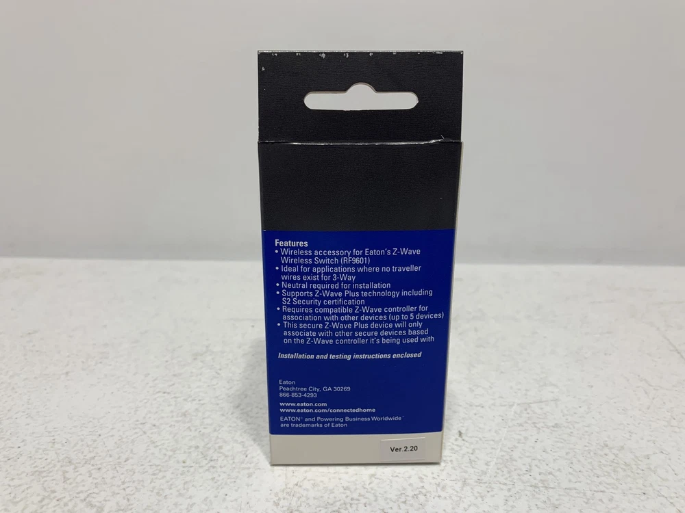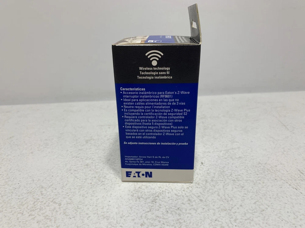 PRODUCT DESCRIPTION Eaton RF9617DSG Z-Wave Accessory Light Switch 120V Silver Granite This is a New Eaton RF9617DSG Z-Wave Accessory Light Switch 120V Silver Granite. It is designed for wireless lighting control using Z-Wave technology. Details: Brand: Eaton Manufacturer Part #: RF9617DSG Condition: Brand new, unused, and in original packaging. 120V AC operation Z-Wave wireless protocol Screwless wall plate ready Applications: Smart home automation Remote light control Shipping: Will ship FedEx Ground — Free Shipping. Expedited shipping options available at checkout. Buy with confidence — this is a genuine Eaton part built to last. Find one of our products cheaper elsewhere? We will beat the price. Feel free to make an offer. © Copyright Chase Surplus, Inc. All rights reserved.