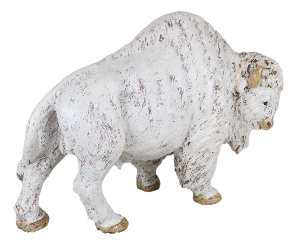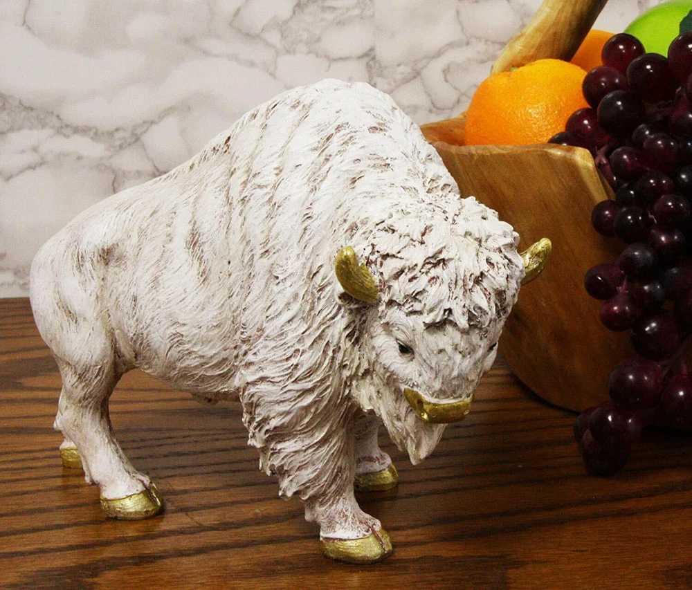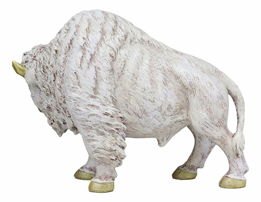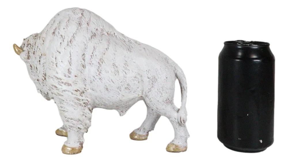 • This Albino White American Bison figurine measures 6.75" tall, 8.75" long and 4.25" deep approximately. It weighs about 1.25 pounds • This Albino White American Bison figurine is made of high quality designer resin, individually hand painted and polished. Color tone may vary from pictures. • This stunning masterpiece american bison is textured and finished off white colors, making the sculpture look aged and vintage. The majestic bison was crucial to the life of the Plains Native Americans. For most tribes in the region, their lives were centered around the bison hunt. The bison is a symbol of provision, abundance and prosperity. Their huge girth and powerful bodies have also turned them into images of strength, stability, and consistency. • The White Bison is considered sacred to the Native American culture. The birth of a sacred white buffalo is a sign of hope and an indication of good times to come. Displaying one in your home will bring you good luck! • This is an Ebros Gift exclusive collection. It comes with our Ebros Gift Satisfaction Guarantee when sold by Ebros Gift. Coke can and props placed next to the statue are not included with the listing. They are meant to provide size perspective of the item. Ebros Native American Sacred White Bison Buffalo Decor Resin Figurine 8.75"L Video will open in a new window Using the mobile app? Copy this link into your browser: