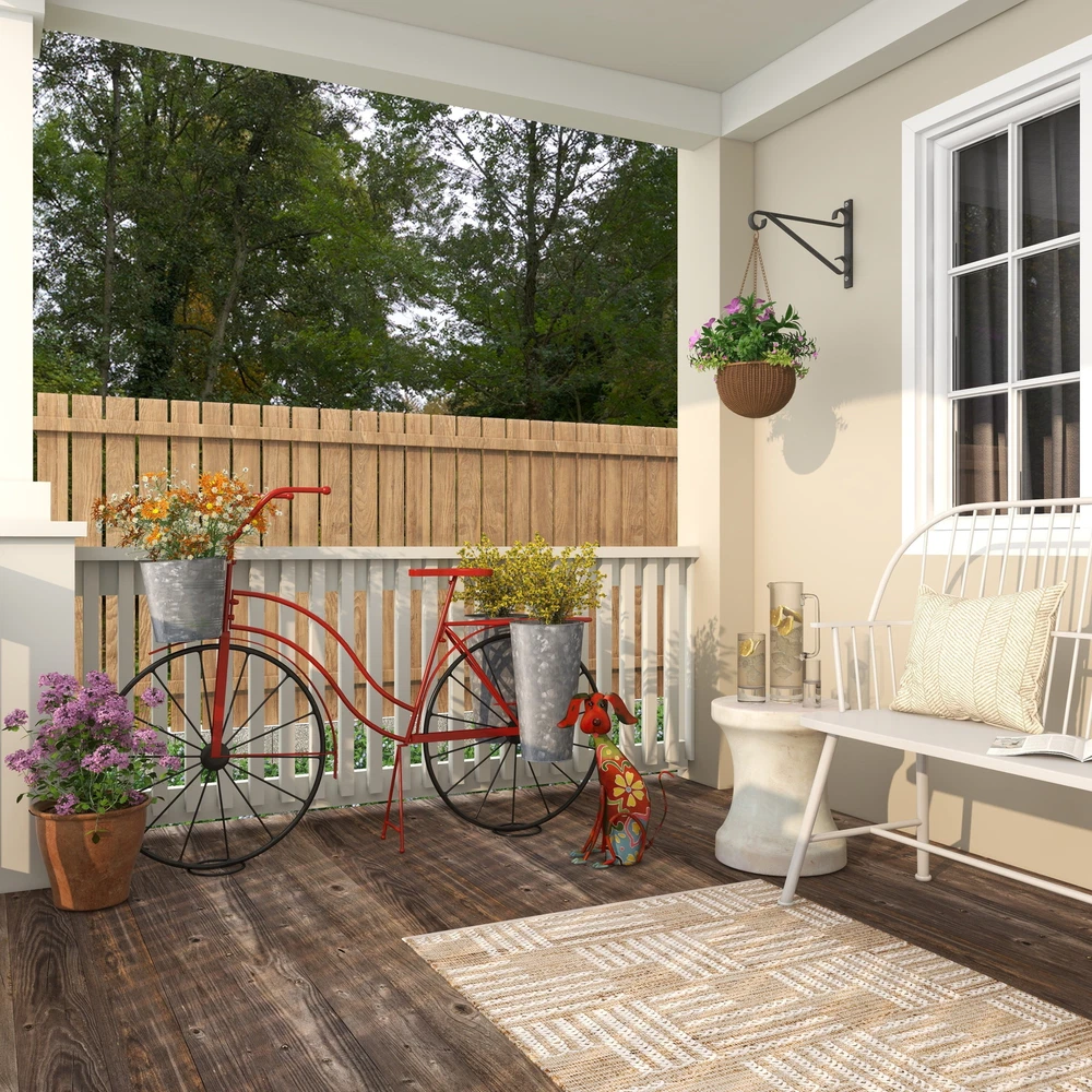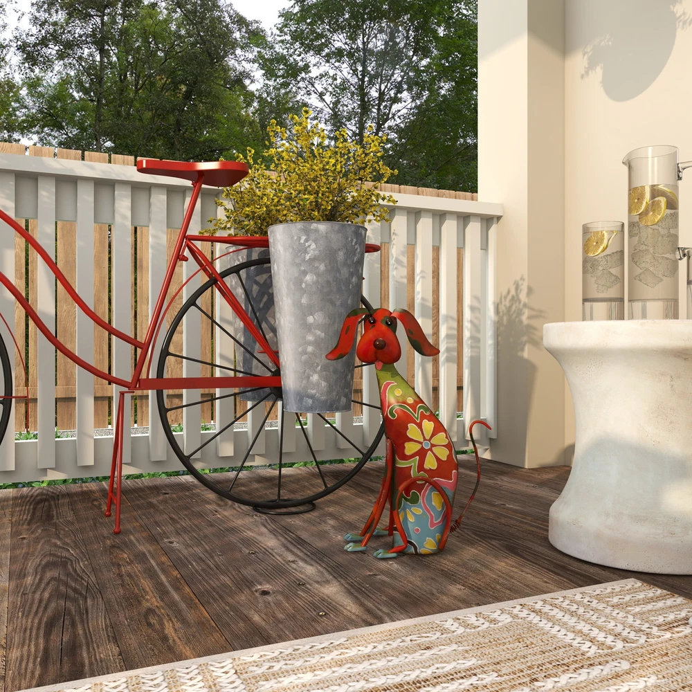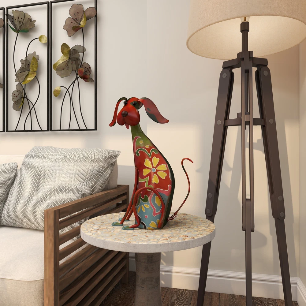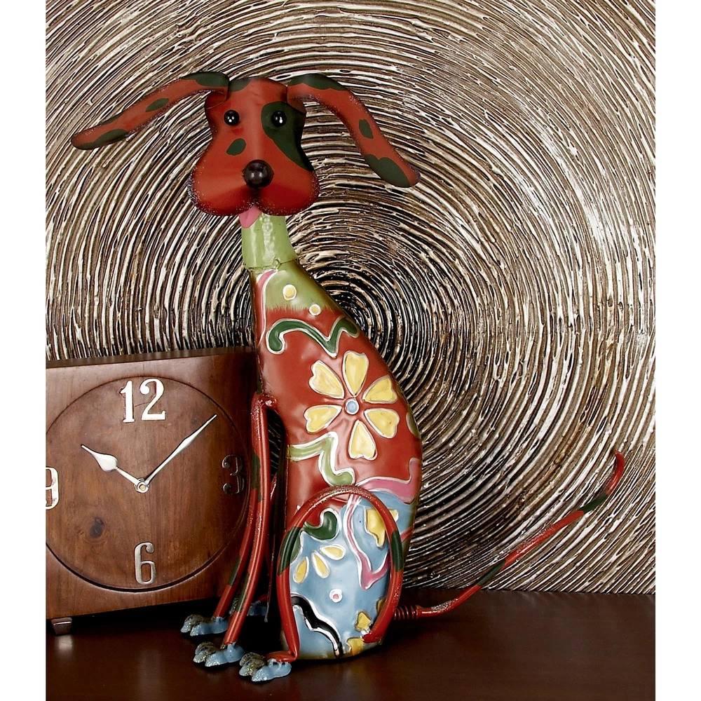 DecMode 17" Indoor Outdoor Dog Garden Sculpture with Floral Pattern is a unique addition to your stylish home. A creative way to add a welcoming look with bold design into your outdoor setting. This garden sculpture is perfect for creating a focal point and adds an inviting look to your outdoor patio space. This dog garden statue can be placed anywhere in living rooms or patios to add an eclectic touch to your decor. This item ships in 1 carton. Iron garden sculpture makes a great gift for any occasion. Suitable for indoor and outdoor use. This item ships fully assembled in one piece. This is a single multi colored garden statue. Eclectic style. On Nov 7, 2024 at 01:47:08 PST, seller added the following information: On Nov 10, 2024 at 20:09:38 PST, seller added the following information: