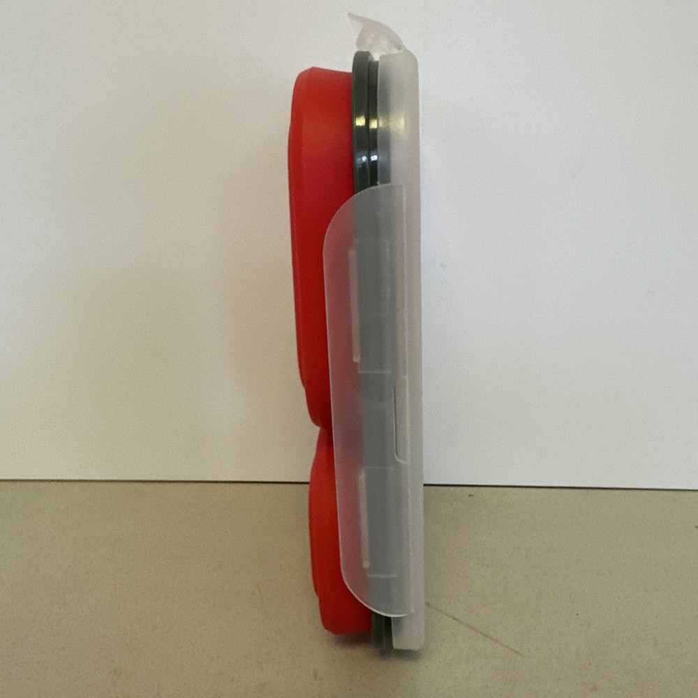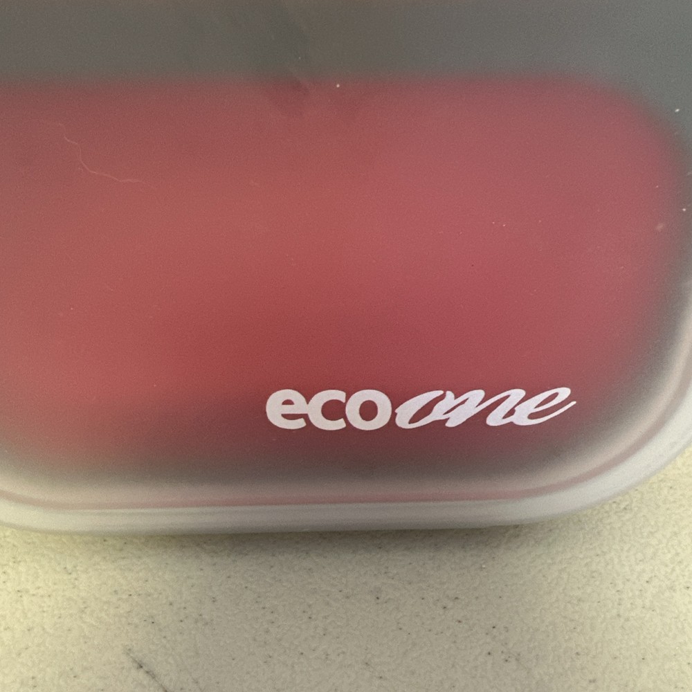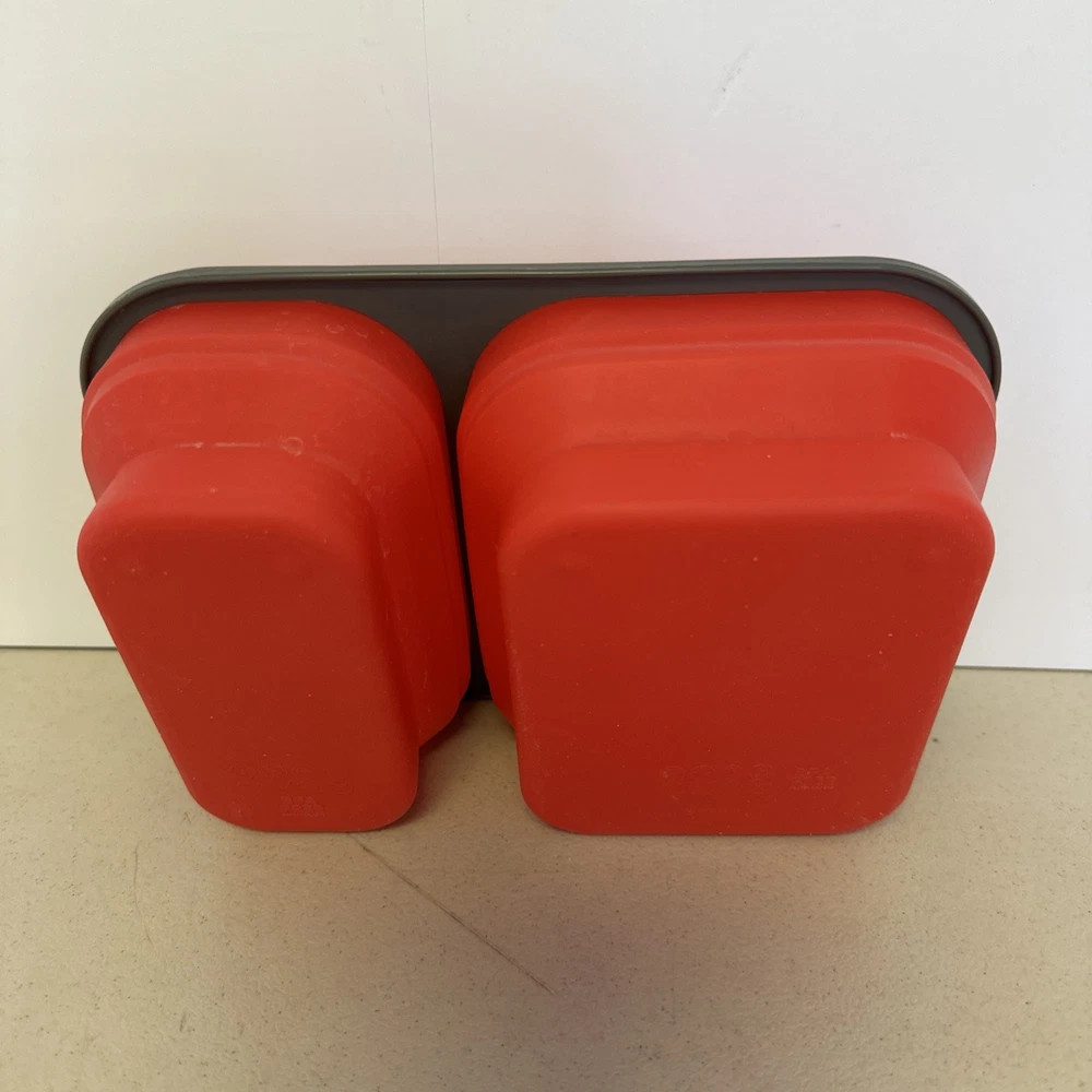 The Eco One Bento Box is a collapsible lunch box set with 3 sections, featuring a snap lid for each compartment. Made of BPA-free red silicone, it is eco-friendly and safe for food storage. The lunch box measures 9 inches in width and 1.5 inches in height, providing ample space for packing meals. Like new condition