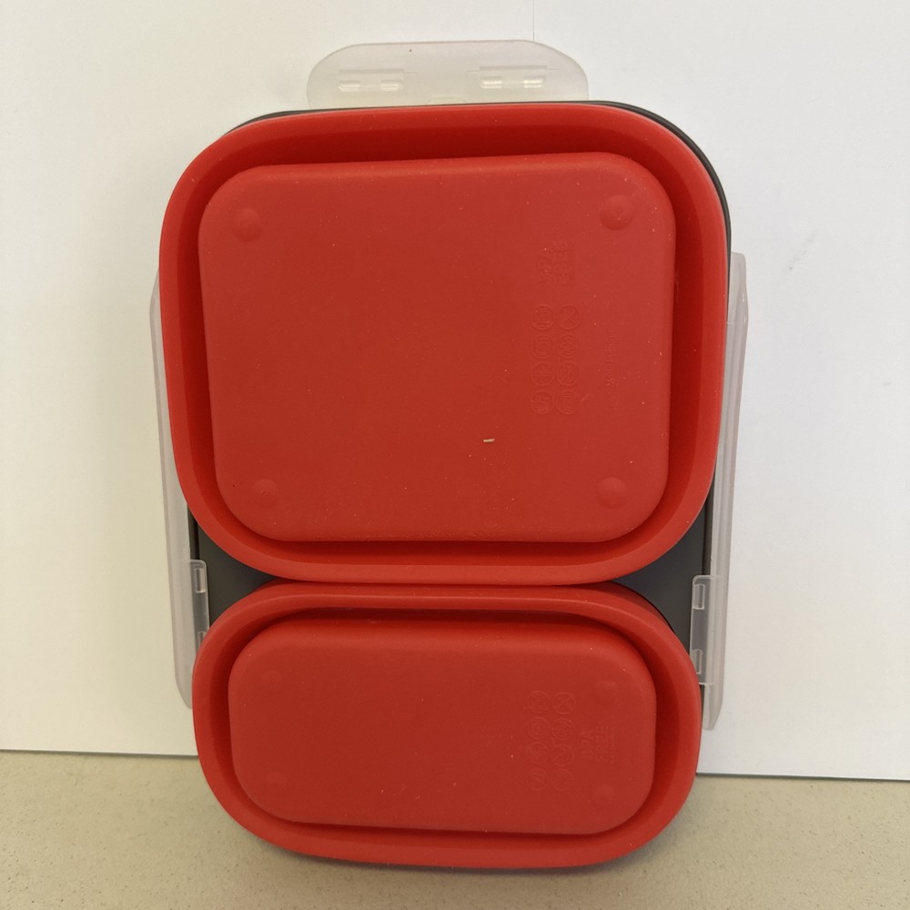 Lid Type: Snap Lid Material: Silicone Type: Lunch Box Number of Items in Set: 3 Item Width: 9 in Brand: Eco One Features: BPA Free Item Height: 1.5 in Color: Red