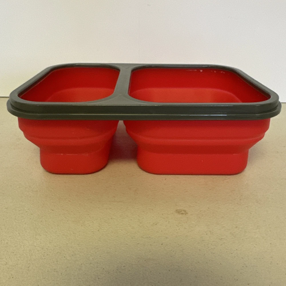 Eco One Bento Box Collapsible 3 Section BPA Free Silicone Lunch Box Red