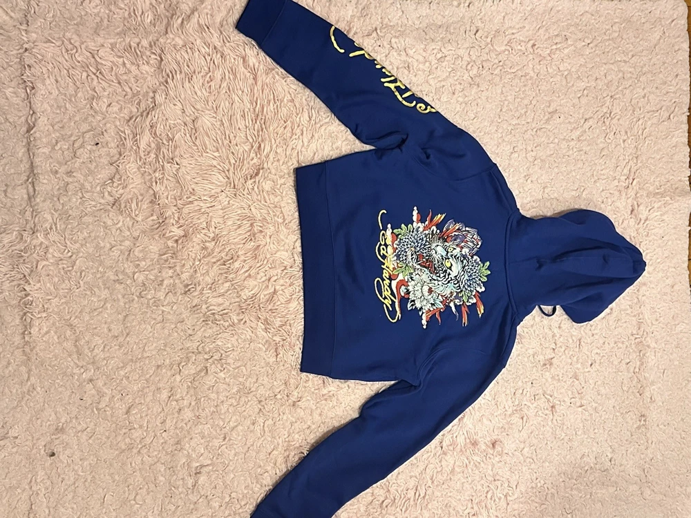 Ed Hardy Blue Graphic Cropped Hoodie