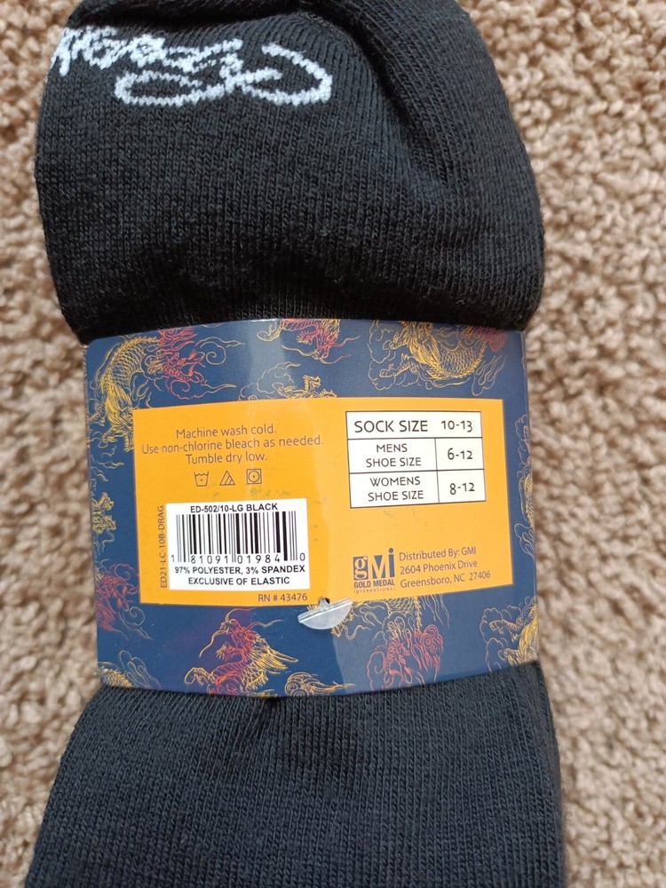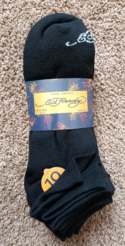 Ed Hardy Men's Low Cut Socks, Shoe Size 6-12 Solid Black 10 Pair NWT -New In Excellent Condition No Rips Or Stains Never Worn Men's Size 6-12 Women's Size 8-12
