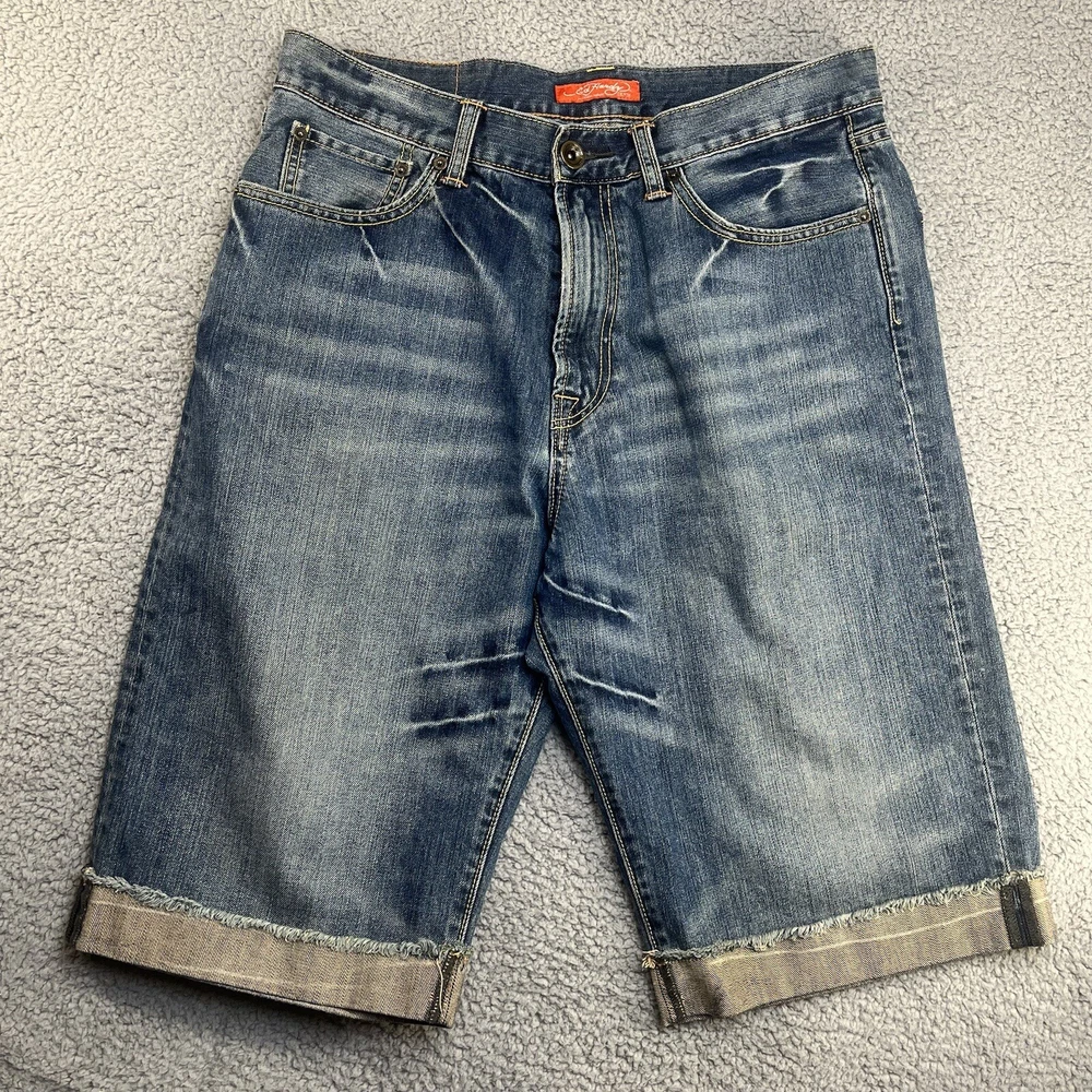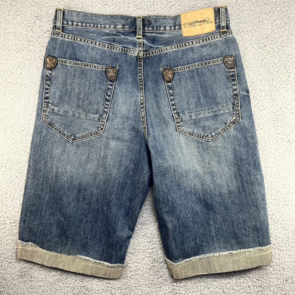 Ed Hardy Denim Jean Shorts Men’s Size 34 Christian Audigier Inseam 13.5”. Actual measurements may vary from the tag. Please measure your favorite garment to ensure a proper fit. Free returns for domestic buyer. Item must be the same condition as it was delivered for a refund.