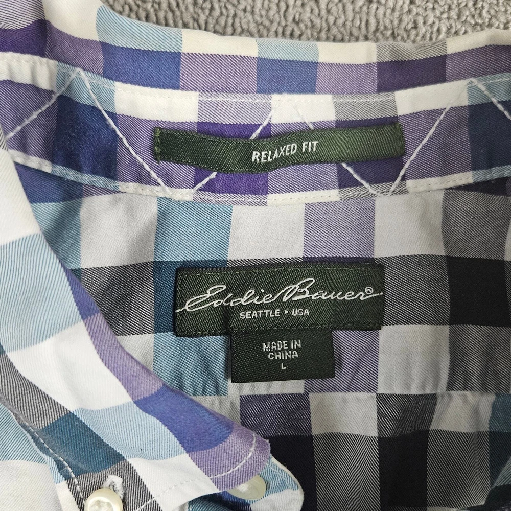 Up for sale is a - Eddie Bauer Shirt Size: Adult Large (L) Measurements: Please see photos above for all measurements Shirt is in good used condition Twill Fabric Breathable Lightweight I will ship this item out via USPS First Class 2-3 Day Mail with a tracking number for confirmation I ship items out EVERY DAY so EXPECT a QUICK delivery! Please feel free to ask any questions you may have I answer most questions instantly! All clothing items have been washed/laundered per manufacturer's standards/instructions.