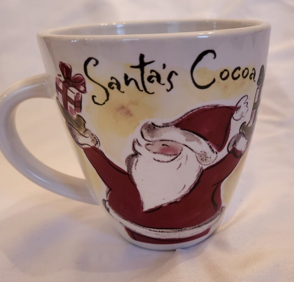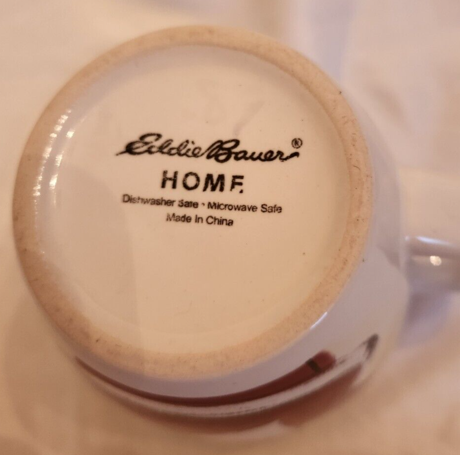 The Eddie Bauer Santa Cocoa Mug is a multicolor ceramic mug featuring a Santa character, perfect for enjoying hot or cold beverages during the Christmas season. This licensed reproduction mug is designed for a single serving, making it a festive addition to your collection of dinnerware and serveware.