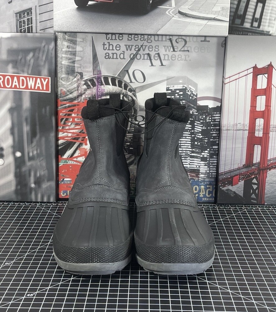 Eddie Bauer Size 11 Mens Dark Grey Paisley Waterproof #287978 Winter Boots NEW • NEW WITH BOX • NEVER WORN • MENS SIZE 11 US Elevate your winter style with these Eddie Bauer paisley snow boots. These boots feature a striking paisley pattern in black and grey, accented by the Eddie Bauer logo. The waterproof suede, polyurethane, and synthetic upper, combined with a rubber outsole, make these boots perfect for any winter or fall activity, whether it's work or play. Pull-on closure and foam insole provide both comfort and convenience, while the handmade design ensures that each pair is unique. Available in size 10 (UK) and 11 (US), these boots are a must-have for any fashion-forward man. Add them to your activewear or workwear collection today!