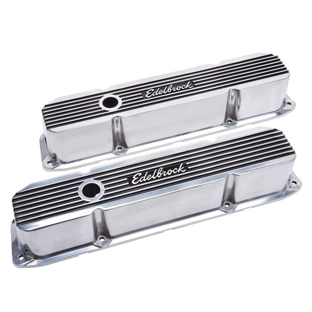 Edelbrock 4276 Elite II Series Valve Cover Valve Cover Set Elite II Series Valve Cover Elite II Series Valve Cover; Polished; Raised Fins; 3.62 in. Overall Height; SPECIFICATIONS: Cylinder Head Type: Standard Engine Make/Size: Mopar 383-440 Material: Aluminum Valve Cover Style: Tall WARNING CA Proposition 65: Yes WARNING CA Proposition 65 Message: WARNING: This product can expose you to Lead which is known to the State of California to cause cancer or birth defects or other reproductive harm. For more information visit . FEATURES: Polished Finish Raised Fins w/Black Mat Background Detailed With Allen Hex Heads 2-Piece Look; 1-Piece Construction Clears Most Roller Rockers Clears Valvetrain Components Heavy Gauge The Edelbrock #4276 Elite II Valve Covers are designed for Chrysler Big-Block 383/440 applications. This new line of Elite II valve covers feature a design that is influenced by the original Elite Series originally released in 1985 but with a new modern take on this classic look. They're made from heavy-gauge die-cast aluminum and are finished off with a show quality high luster polished finish. The raised fins are accented by a contrast gloss black finish between the fins for the definitive Elite Series look. Our tall profile valve covers are 2" taller than stock and clear most roller rockers and valvetrain components. Our low profile valve covers clear all air-conditioning alternator brackets and aluminum rockers. Overall height is measured from gasket flange to top at the highest point. When you design and sell the best-engineered performance products in the world you have to have a rigorous testing program. Why? Without adequate testing there's no way to stand behind your product with confidence. That's why every product we design and sell at Edelbrock is tested and approved by Edelbrock engineers in a real world environment on state-of-the-art equipment. Our three Super Flow computerized engine dynos are capable of measuring 11 separate engine variables up to speeds of 12 000 rpm. For 2007 we added a new Super Flow SF902 engine dyno. It's fully automated and programmable to simulate various driving situations and is equipped with WinDyn software for the very latest in testing equipment. For real-world tuning there's our Super Flow model SF-840 eddy-current chassis dyno that can handle up to 1 000 hp at the wheels and speeds of 200 mph. When all testing is completed the results evaluated and the part has passed all performance criteria then and only then is the product deemed ready for production. These precise testing procedures are applied to the entire Edelbrock line for performance that's guaranteed. Edelbrock test vehicles are driven by Edelbrock engineers and employees to get a "real world" feeling for the performance improvements. Our products are also tested and used by professional race car teams and drivers. Working with these talented individuals is just another extension of our research and development process so when we say "proven performance" we really mean it! Top racing teams in all forms of motorsports rely on Edelbrock to produce parts that they can count on to win races and championships. Further underscoring our commitment to the racing community Edelbrock is the only aftermarket intake manifold manufacturer licensed by NASCAR. Fits what vehicles: 1959-1960 Chrysler Saratoga, 1959-1961 Chrysler Town & Country, 1959-1961 Chrysler Windsor, 1959-1960 DeSoto Adventurer, 1959 DeSoto Firedome, 1959 DeSoto Fireflite, 1959 Dodge Coronet, 1959-1961 Dodge Custom, 1959 Dodge Lancer, 1959 Dodge Royal, 1959 Dodge Sierra, 1959-1961 Facel Vega Excellence, 1959-1961 Facel Vega HK500, 1963-1977 Chrysler Town & Country, 1960-1962 Dodge Dart, 1960 Dodge Matador, 1960-1961 Dodge Phoenix, 1960-1973 Dodge Polara, 1960-1963 Dual-Ghia L6.4, 1963 Facel Vega Excellence, 1960-1970 Plymouth Belvedere, 1960-1961 Plymouth Custom, 1960-1963 Plymouth Fleet Special, 1960-1978 Plymouth Fury, 1960-1964 Plymouth Savoy, 1960-1961 Plymouth Sport Wagon, 1960-1961 Plymouth Suburban, 1961 Dodge Pioneer, 1961 Dodge Seneca, 1962-1971 Chrysler 300, 1963-1964 Dodge 330, 1963-1964 Dodge 440, 1963-1965 Dodge 880, 1963-1964 Facel Vega Facel II, 1965-1976 Dodge Coronet, 1967-1969 Dodge Dart, 1964-1966 Jensen C-V8, 1965-1978 Chrysler Newport, 1965-1978 Dodge Monaco, 1965-1967 Plymouth Belvedere II, 1965-1966 Plymouth Fury II, 1965-1974 Plymouth Fury III, 1965-1974 Plymouth Satellite, 1966-1974 Chrysler Imperial, 1966-1978 Chrysler New Yorker, 1966-1978 Dodge Charger, 1968-1974 Plymouth Fury II, 1967 Dodge D100 Series, 1967 Dodge D200 Series, 1967 Dodge D300 Series, 1967 Dodge W100 Series, 1967 Dodge W200 Series, 1967 Dodge W300 Series, 1967 Fargo D100 Panel Delivery, 1967-1972 Fargo D100 Pickup, 1967-1972 Fargo D110 Pickup, 1967 Fargo D200 Panel Delivery, 1967-1972 Fargo D200 Pickup, 1967-1972 Fargo D210 Pickup, 1967 Fargo W100 Panel Delivery, 1967-1972 Fargo W100 Pickup, 1967-1972 Fargo W200 Pickup, 1967-1974 Jensen Interceptor, 1967-1974 Monteverdi 375, 1967-1972 Plymouth Barracuda, 1967-1971 Plymouth GTX, 1967 Plymouth VIP, 1968-1974 Dodge D100 Pickup, 1968-1974 Dodge D200 Pickup, 1968-1974 Dodge D300 Pickup, 1968-1974 Dodge W100 Pickup, 1968-1974 Dodge W200 Pickup, 1968-1974 Dodge W300 Pickup, 1968-1974 Plymouth Fury I, 1968-1975 Plymouth Road Runner, 1969-1974 Bristol 411, 1969-1972 Fargo W110 Pickup, 1970-1974 Dodge Challenger, 1970-1972 Plymouth Cuda, 1970 Plymouth Superbird, 1971-1974 Dodge B200 Van, 1971-1974 Dodge B300 Van, 1972-1977 Plymouth Gran Fury, 1974 Dodge B100 Van, 1974 Dodge M300, 1974 Dodge MB300, 1974 Dodge Ramcharger, 1974 Plymouth PB200 Van, 1974 Plymouth PB300 Van, 1974 Plymouth Trailduster, 1975-1978 Chrysler Cordoba, 1975-1978 Dodge D200, 1975-1977 Dodge Royal Monaco, 1975-1977 Dodge W100, 1976-1978 Dodge B200, 1976-1978 Dodge B300, 1976-1978 Dodge CB300, 1976-1978 Dodge D100, 1976-1978 Dodge D300, 1977-1978 Dodge Ramcharger, 1976-1978 Dodge W200, 1976-1978 Dodge W300, 1976-1978