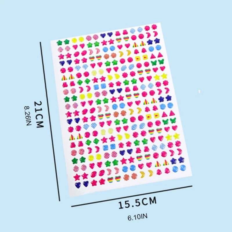 Features: and high Qualification qualified environmental & paper,non-toxic,wear resistance, durable and reusable for long for time Exquisite With cutting technology to ensure it's easy to tear, peel it off easily without for extra cutting, also acceptable to peel off for reuse on other surfaces. DIY Fun for Kids: Self-adhesive, can be adhered onto book or the smooth surface directly, enjoy the processing of DIY for kids’ early educational fun in teaching, also application for girls lovely earrings. Speciality with colorful sparkling realistic crystal size with different shapes suitable as accessories, which also makes it with great for kids to do their DIY exercise their for creative & hand-on ability. for for Kids & Girls: The best kids and girls, suitable for birthday preschool supplies, teaching supplies or kid’s room decoration. Specifications: Product Dimension: approx. 21 x 15.5cm/8.26 x 6.10 inch Paper Net Weight: approx. 10g/0.02 lbs Package Includes: 1 Sheet 3-D Sticker note: Please allow 1-2cm errors due to manual measurement. Due to the difference between different monitors, the picture may not reflect the actual color of the item.