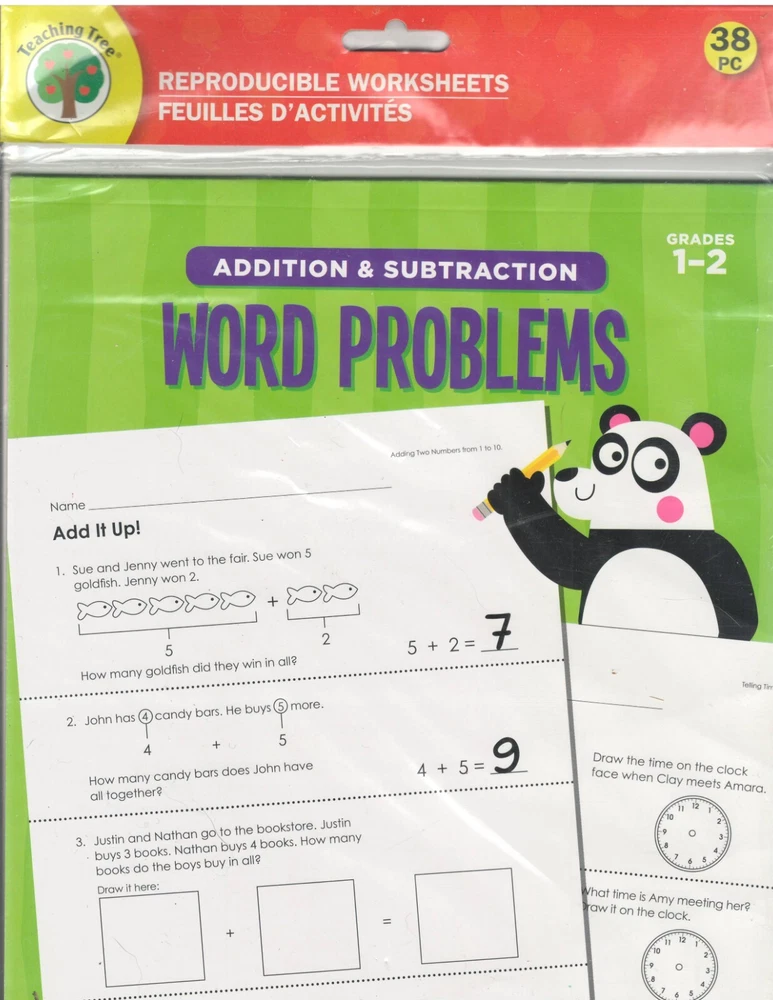 Three Teaching Tree items 1) Primary Learning Sight Words Reproducible Worksheets - 38 piece - Grades 2-3 Reproducibles 2) Educational Posters - Ordinal Numbers and Patterns with Bugs - 2 piece - 17" x 22" each 3) Word Problems - Addition and Subtraction 38 Unique Worksheets Grades 1-2 All are sealed, new packets