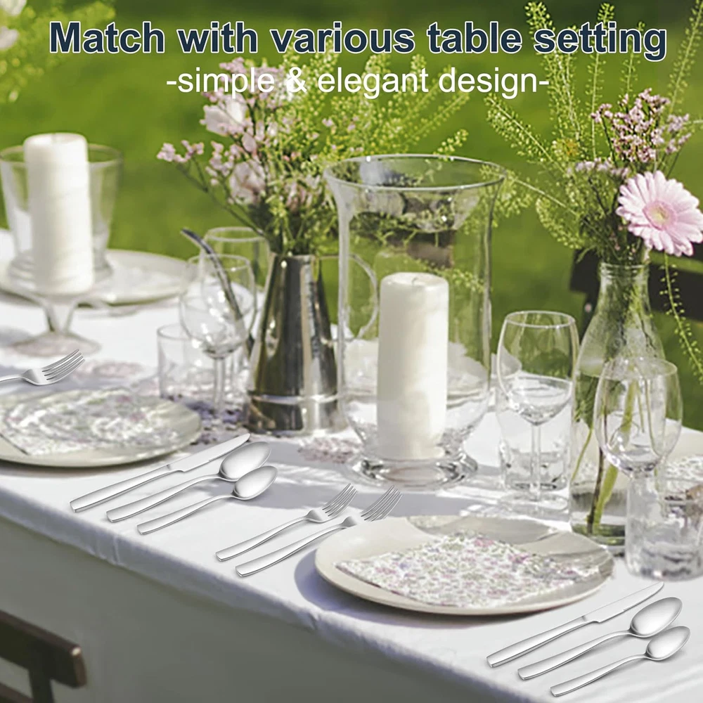 Love this sleek and modern flatware set! The matte silver finish looks elegant and feels sturdy in hand. The square handles give it a unique, contemporary touch, and it’s perfect for everyday use or special occasions. Dishwasher safe and rust-resistant, making cleaning a breeze. Comes with everything you need for four—knives, forks, spoons, even dessert spoons! Great quality for the price. Highly recommend!