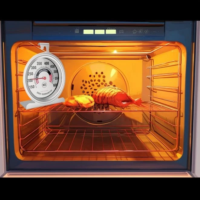 Efeng Large 3.5" Oven Thermometers for Gas/Electric with Silver Product Details Product Dimensions : 3.94 x 0.01 x 0.01 inches; 3.21 ounces Item model number : TH019 Manufacturer : Efeng Country of Origin : China Brand: Efeng Special Feature: Large Display, Fast Refresh, High Accuracy Color: Silver Age Range (Description): Adult Included Components: use instruction Outer Material: Stainless Steel Specification Met: NSF Display Type: Analog Product Care Instructions: Oven Safe, Wipe Clean Unit Count: 1.0 Count Clear Large Dial Display: The oven thermometer is with a extra-large and colorful 3.5" analog dial which makes it easy to read in long distance, and as a oven thermometer for gas oven and oven thermometer for electric oven temperature or oven thermometer for electric oven, the high temperature resistant dial is not fading with long time in oven, the convenient warming, baking, and roasting zones are printed for easy reference and monitoring the cooking food. Super Large Hanger and Base Plate: This oven thrmometer is perfectly designed for traditional gas ovens, electric ovens, toaster ovens, grills or any other heat based food appliance. With the large size desgin,the oven thermometer can stand or hang on the oven shelf more then 15mm diameter or rack easily by the large holder and stand. Highly accurate: This oven thermometer is NSF-approved oven safe thermometer, which complies with all required standards for the quality.The oven thermometer for electric oven, gas oven or grill oven can accurately monitor oven inside temperature from 150℉ to 600℉, It works perfectly in any professional home or commercial kitchen cooking. Oven safe durability: The oven thermometer is designed with durable stainless steel construction and tempering glass lens whiich can provide strong, dependable quality for safe cooking,and the high temperature resistant dial can make sure dial scale no fading color after a long time cooking in oven, the easy-clean construction help you easily clearn and reuse. Battery Free Design: This oven thermometer for electric oven and gas oven is mechanical design, no need battereies. Just put it in the oven, make it stand or hang, then start to cook without worries. and with the high temperature resistant dial and SS construction, it can work for a long time. Reliable and friendly customer service: Always be ready to respond within a 24-hour time.