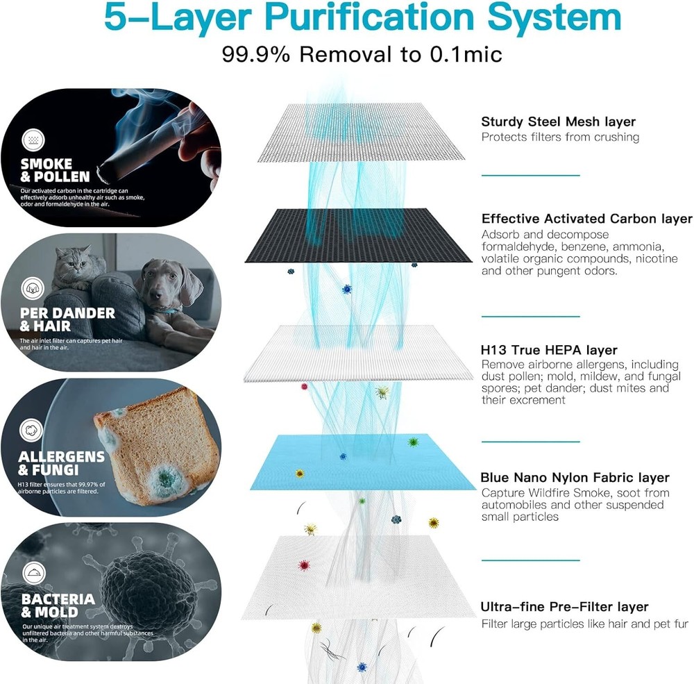 24x24x11.5 HEPA Air Purifier Filter for Large Rooms Removes 99.99% Pollutants