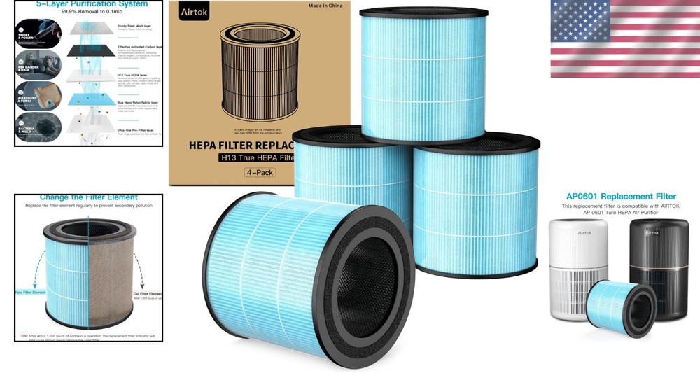 Efficient HEPA Air Purifier Filters - 4 Pack, Compatible with Airtok Models ‹ › ‹ › ‹ › ‹ › ‹ › ‹ › ‹ › ‹ › ‹ › Efficient HEPA Air Purifier Filters - 4 Pack Compatible with Models Experience Unmatched Air Quality Authentic Filters: Avoid the risks associated with off-brand filters. Our genuine filters ensure your air purifier operates at peak performance, delivering clean, breathable air. HEPA Filtration Power: Captures 99.97% of particles as small as 0.3 microns, including household dust, pet dander, plant pollen, smoke, fibers, pet fur, and even unpleasant odors from diaper bins, teenagers' rooms, wet dogs, and cat litter. 4-IN-1 Filter Design Includes a Nylon Pre-Filter that effectively traps hair, lint, and pet fur. A high-efficiency HEPA Filter eliminates smoke particles and improves air quality. The Activated Carbon Filter adeptly absorbs odors, ensuring a pleasant environment. Effortless Replacement Each filter is sealed to protect its longevity. Simply remove the plastic packaging before installation. After replacing, reset the filter change reminder by pressing and holding the indicator button. Longevity That Counts We recommend changing your filters every 3-6 . However, depending on usage frequency and air quality, you may adjust the replacement period to ensure optimal performance. Why Our Filters? Invest in your health and home with 's official HEPA filters. Designed to maintain the ideal air quality in your space, our filters deliver peace of mind and superior filtration. Don't settle for less when it comes to your air – breathe easy with our efficient air purifier filters. Shipping Free & Fast Shipping - We offer free shipping to most of the USA with a normal delivery time of 3-7 days. However, due to the current situation, additional delivery time (up to 3 weeks) may be required for some items. Alternative Carriers - We may use alternative carriers (e.g. USPS, FedEx, UPS, etc.) to ensure your package arrives safely and on time. Due to the use of multiple carriers, we are unable to provide a tracking number automatically. Handling Time - Orders are processed and shipped within 1-2 business days of receiving cleared payment. Shipping Restrictions - Shipping to Alaska, Hawaii, Puerto Rico, Guam, and other US territories may incur shipping charges or delivery restrictions. Please contact us before ordering, or your order can be refunded/cancelled. State Restrictions - There may be restrictions based on your state of purchase. For example, certain items may not be shipped to California due to state regulations. Contact for Tracking Updates - If you require tracking updates or have any concerns about the delivery of your order, please feel free to contact us, and we will be happy to assist you. Return 30-Day Hassle-Free Returns - We want you to be completely satisfied with your purchase. If you are not, you can return the item within 30 days of receiving it for a full refund or exchange. Easy Return Process - To start a return, simply contact us and we will provide you with a prepaid return shipping label and detailed instructions. Restocking Fee - There are no restocking fees for returns. However, the buyer is responsible for return shipping costs if the return is not due to a seller's error. Refund Processing Time - Refunds will be processed within 5 business days of receiving the returned item in its condition. Payment We accept all major credit cards, PayPal, and Apple Pay for your convenience. Your payment information is secure and encrypted to ensure a safe and seamless transaction. Please complete your payment within 3 days of purchase to avoid any delays in shipping. Feedback Your feedback is extremely important to us. We strive to provide the best products and customer service possible. If you are satisfied with your purchase, please take a moment to leave us a positive review. If you have any concerns or issues with your order, please contact us before leaving negative feedback. We are committed to resolving any problems and ensuring your satisfaction. Contact Us If you have any questions or concerns, please feel free to out to our customer support team. You can contact us through the eBay messaging system. We are available Monday to Friday, 9:00 am to 5:00 pm EST, and we will do our best to respond to your inquiry within 24 hours. Buy it now and enjoy a pleasant shopping experience! Unit Quantity: 13.4 ounces Application: Air Purifier Filter Frame Material: Nylon Features: Reusable/Washable Filter,Easy to Replace Type: Filter MERV Rating: 13 Number in Pack: 4 Filter Media: Activated Carbon Filtration Technology: True HEPA Color: White Filter Life: 3 Item Diameter: 5.8 in Item Depth: 5.8 in Unit Type: oz