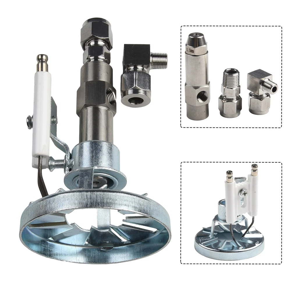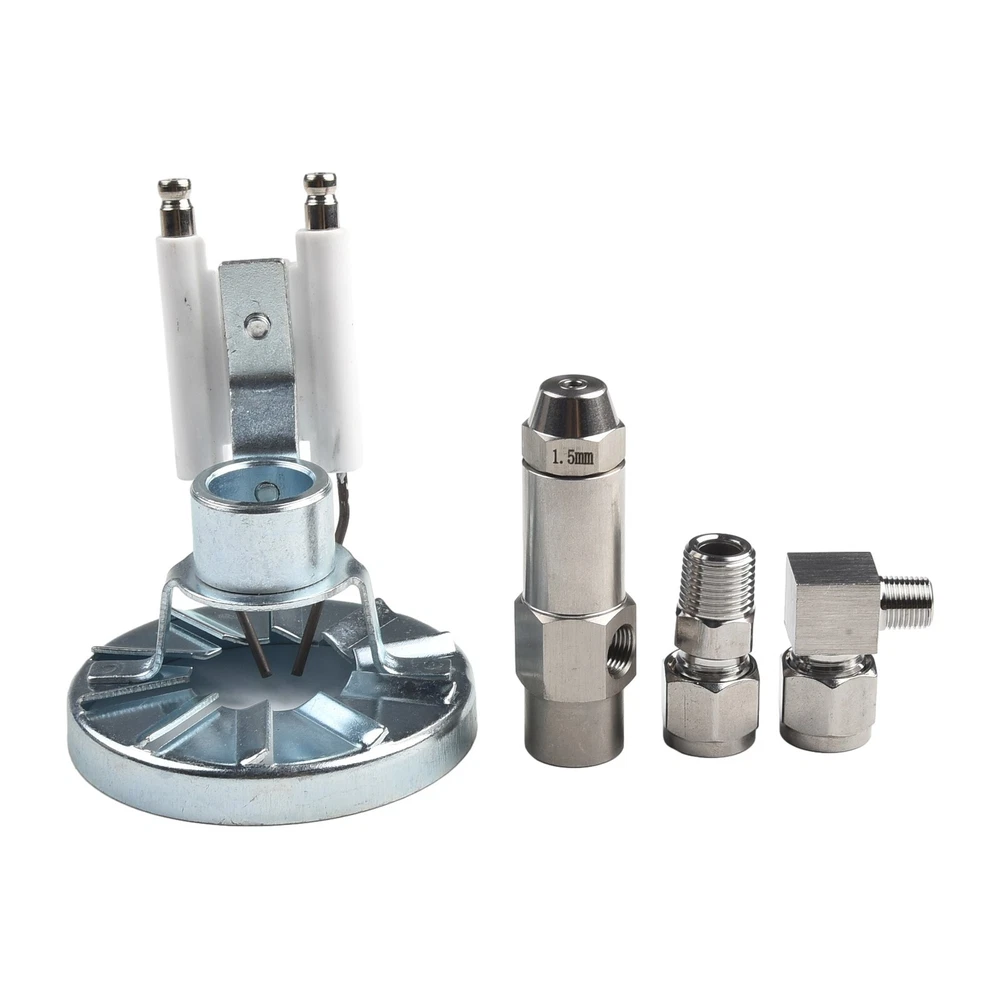 DESCRIPTION Feature: *Using compressed air in the tube for Vortex and mixed atomization droplet. *Can produce tiny-particle size fog particles under low pressure and low volume conditions. *Air flow and pressure can be controlled to adjust the spray flow, angle and size particles. *Good anti-clogging effect because of the high fluid passage through the nozzle. *It is very effective in atomizing heavy oil, waste oil burners, oil and other applications with high viscosity. *Widely used in diesel, heavy oil, waste oil, waste oil, animal and vegetable oils,and other alcohol-based fuel oil, gas, combustion spray s, spray workshop humidification cooling, mechanical cleaning dust. *Usually the working pressure is 3bar, and the waste fluid is 10L/H for the 1.00mm version. 19L/H for the 2.0mm version, and 28L/H for the 3.0mm version. 28L/H for the 3.0mm version. capacity tolerance is±10%. The siphon height is 30cm, and the jet angle is 45 degrees. *Please note that the above data is based on water as a reference. If other liquids are used, the calculation can be done in proportion to the density. Details: *Material:metal *Hole diameter:0.8mm,1.0mm,1.5mm,2.0mm *Outer diameter: 18mm *Overall length: 78mm *Nozzle size: 9/16" *Air inlet: 1/4", please insertΦ8mm or 6mm hose. *Oil inlet: 1/8", please insertΦ8mm or 6mm hose. *Color:Silver A set of particle burner ignition including: Stainless steel Siphon Nozzle: 1 Piece (0.8mm,1.0mm,1.5mm,2.0mm.) Burner Flame Rings: 1Piece Ignition Needle: 1Piece Package Contents: 1Set nozzle Note: 1. The real color of the item may be slightly different from the pictures shown on website caused by many factors such as brightness of your monitor and light brightness. 2. Please allow slight manual measurement deviation for the data. POLICES Shipping Payment WARRANTY We only ship to confirmed ebay Order addresses. Please comfirm that your Order address is in line with your shipping address. Please kindly note that the c ombined shipping is not provided because the shipping fee is calculated by weight. Also, the each additional item means exactly the the same color and size. It takes about 7 -15 working days to US; about 10-30 working days to other countries. Transit time may be a little delayed because of the bad weather and customs inspection . If you do not receive your item within 30 working days since payment finished, please contact us immediately for further assistance. Payment must be completed within 5 days. If you have any problems about payment, please contact us via ebay message. We strive for 100% customer satisfaction! Positive Feedback is very important to us. If you have any questions, p lease feel free to contact us via "Ask seller a question" . We will reply your email within 24 working hours.