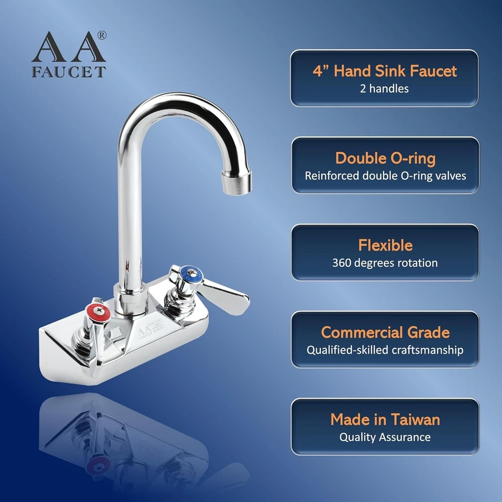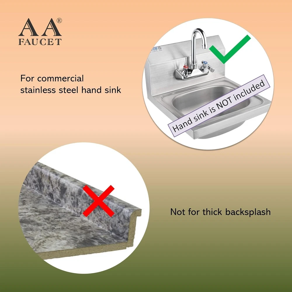 Efficient Wall Mounted Hand Sink Faucet with NSF Approval and 2 Gallons/Min Flow ‹ › ‹ › ‹ › ‹ › ‹ › ‹ › ‹ › ‹ › Efficient Wall Mounted Hand Sink Faucet NSF Approved with 2 Gallons/Min Flow Features: Durable and Long-Lasting: Expertly designed with heavy-duty brass construction and a polished chrome finish, ensuring exceptional durability for rigorous commercial usage. Lever Handles: Ergonomically designed lever controls with color-coded red and blue handles allow for easy and precise adjustment of water temperature. Reinforced with double O-ring valves for reliable leak prevention. Aerated Stream: Equipped with an aerator that filters particles and produces a softer, less forceful water stream. Perfect for rinsing food, washing dishes, or cleaning delicate items without causing splashing. Gooseneck Spout: Features a 3-½” Gooseneck spout, specifically made for commercial stainless steel hand sinks. Not suitable for marble countertops with backsplashes. Specifications: Wall mount 4" hot to cold inlets Faucet body dimensions: 6-1/8" x 2-1/4" x 3-1/2" Gooseneck Spout dimensions: 3-1/2" x 6-3/4"H Gross Weight: 2 LB 5 OZ 1/2" NPS thread male inlets NSF Approved Why Choose Our Efficient Wall Mounted Hand Sink Faucet? Upgrade your kitchen or commercial space with our Efficient Wall Mounted Hand Sink Faucet. Crafted for durability and efficiency, this faucet combines a sleek design with utmost functionality, perfect for restaurants, cafes, or home kitchens. With its aerated stream reducing splashes and mess, precise temperature control, and an elegant gooseneck design, this faucet is designed to elevate your experience while ensuring safety and cleanliness. Trust in its NSF approval for peace of mind, knowing you’ve made a quality choice for your culinary needs. Don’t compromise on quality; order your Efficient Wall Mounted Hand Sink Faucet today and experience the difference in your daily tasks! Shipping Free & Fast Shipping - We offer free shipping to most of the USA with a normal delivery time of 3-7 days. However, due to the current situation, additional delivery time (up to 3 weeks) may be required for some items. Alternative Carriers - We may use alternative carriers (e.g. USPS, FedEx, UPS, etc.) to ensure your package arrives safely and on time. Due to the use of multiple carriers, we are unable to provide a tracking number automatically. Handling Time - Orders are processed and shipped within 1-2 business days of receiving cleared payment. Shipping Restrictions - Shipping to Alaska, Hawaii, Puerto Rico, Guam, and other US territories may incur shipping charges or delivery restrictions. Please contact us before ordering, or your order can be refunded/cancelled. State Restrictions - There may be restrictions based on your state of purchase. For example, certain items may not be shipped to California due to state regulations. Contact for Tracking Updates - If you require tracking updates or have any concerns about the delivery of your order, please feel free to contact us, and we will be happy to assist you. Return 30-Day Hassle-Free Returns - We want you to be completely satisfied with your purchase. If you are not, you can return the item within 30 days of receiving it for a full refund or exchange. Easy Return Process - To start a return, simply contact us and we will provide you with a prepaid return shipping label and detailed instructions. Restocking Fee - There are no restocking fees for returns. However, the buyer is responsible for return shipping costs if the return is not due to a seller's error. Refund Processing Time - Refunds will be processed within 5 business days of receiving the returned item in its original condition. Payment We accept all major credit cards, PayPal, and Apple Pay for your convenience. Your payment information is secure and encrypted to ensure a safe and seamless transaction. Please complete your payment within 3 days of purchase to avoid any delays in shipping. Feedback Your feedback is extremely important to us. We strive to provide the best products and customer service possible. If you are satisfied with your purchase, please take a moment to leave us a positive review. If you have any concerns or issues with your order, please contact us before leaving negative feedback. We are committed to resolving any problems and ensuring your satisfaction. Contact Us If you have any questions or concerns, please feel free to reach out to our customer support team. You can contact us through the eBay messaging system. We are available Monday to Friday, 9:00 am to 5:00 pm EST, and we will do our best to respond to your inquiry within 24 hours. Buy it now and enjoy a pleasant shopping experience! UPC: Not Set Item Weight: 2.3 Model: Not Set Unit Quantity: 2 Material: Brass,Chrome Polished Suitable For: Kitchen Sink,Restaurant Kitchen Features: 360 swivel,Aerated Stream,Leak Prevention,Lever Handles Labels & Certifications: Not Set Room: Kitchen Items Included: Faucet Base,Gooseneck Spout,Red and Blue Handles,Compression Nuts,Washers Brand: Unbranded Type: Faucet Finish: Polished Chrome Number of Faucet Holes: 1 Color: Silver Number of Faucet Handles: 2 Handle Type: Lever Faucet Mounting Type: Wall Mount Shape: Gooseneck Installation: Wall Mounted Faucet Hole Spacing: 4 in Item Height: Not Set Item Width: Not Set Item Length: Not Set Spout Height: 8 Inches Manufacturer Warranty: Not Set MPN: Not Set Manufacturer: Not Set Product Line: Not Set Style: Contemporary Country/Region of Manufacture: Not Set Unit Type: lb Assembly Required: Not Set