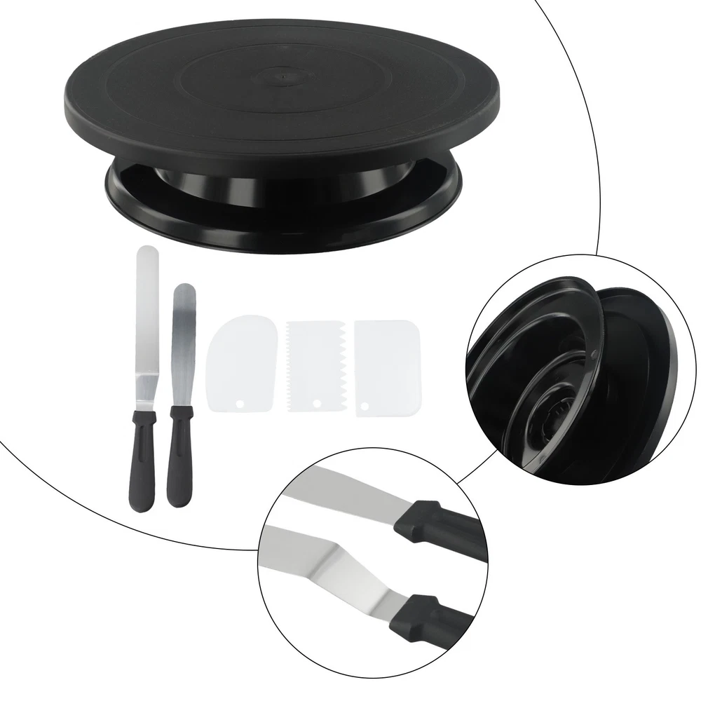 Effortless Cake Decorating with this Rotating Turntable and Accessories DESCRIPTION Features: *for 360-degree rotating turntable: The cake turntable can rotate for 360 degrees, allowing you to easily for access all angles of the cake for decorating. *Non-slip : The turntable features a non-slip , stability and nix accidents during cake decorating. * hard-wearing and lightweight: Made from high-quality materials, the cake turntable is both hard-wearing and lightweight, making it easy to transport and store. *Versatile baking accessories: The kit includes 6pcs of for essential cake decorating tools, providing everything you need for professional-looking cakes. *Easy to clean: The turntable and accessories are easy to clean, that you can reuse them for multiple baking projects. Specifications: *Part Name: Cake turntable *Material: PP *Size:As picture *Color: As picture Package Content: 1*black turntable 2*straight spatulas 3*scrapers Note: 1. The real color of the item may be slightly different from the pictures shown on website caused by many factors such as brightness of your monitor and light brightness. 2. Please allow slight manual measurement deviation for the data. POLICES Shipping Payment WARRANTY We only ship to confirmed ebay Order addresses. Please comfirm that your Order address is in line with your shipping address. Please kindly note that the c ombined shipping is not provided because the shipping fee is calculated by weight. Also, the each additional item means exactly the the same color and size. It takes about 7 -15 working days to US; about 10-30 working days to other countries. Transit time may be a little delayed because of the bad weather and customs inspection . If you do not receive your item within 30 working days since payment finished, please contact us immediately for further assistance. Payment must be completed within 5 days. If you have any problems about payment, please contact us via ebay message. We strive for 100% customer satisfaction! Positive Feedback is very important to us. If you have any questions, p lease feel free to contact us via "Ask seller a question" . We will reply your email within 24 working hours. On Jul 4, 2025 at 18:45:56 PDT, seller added the following information: