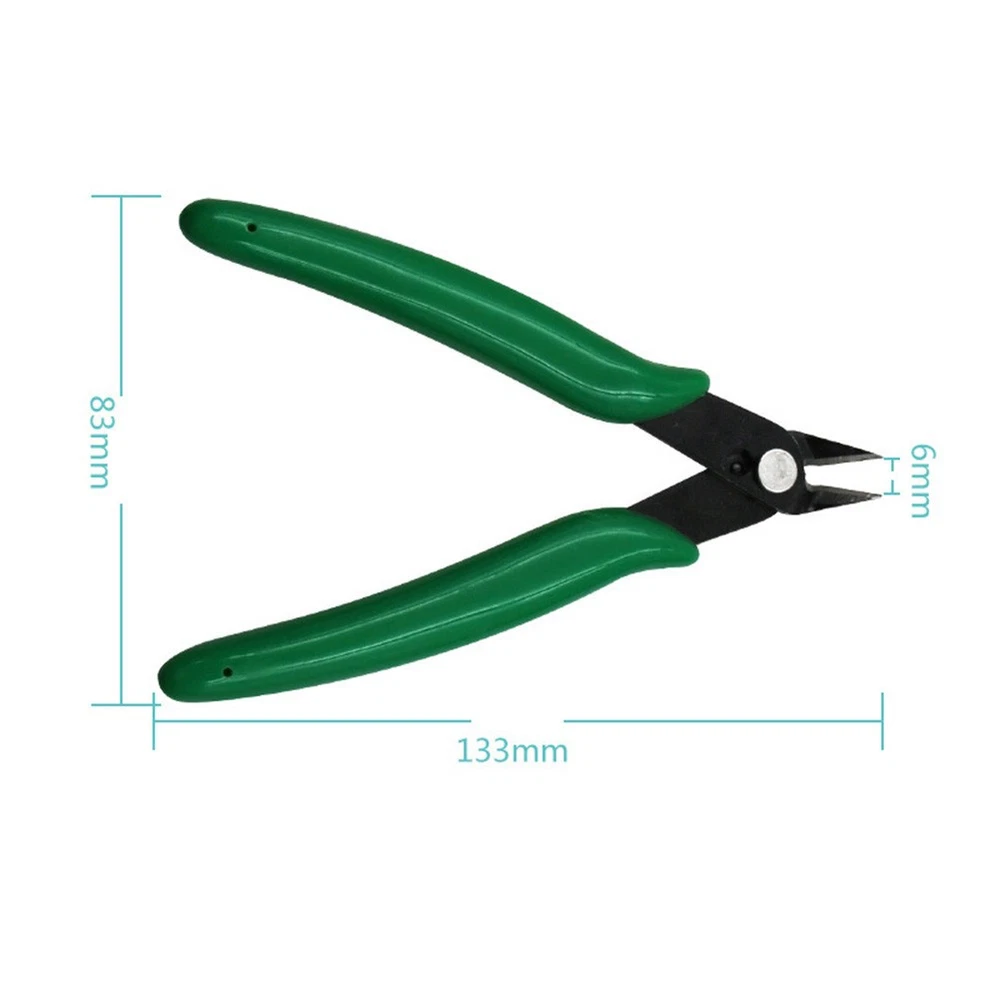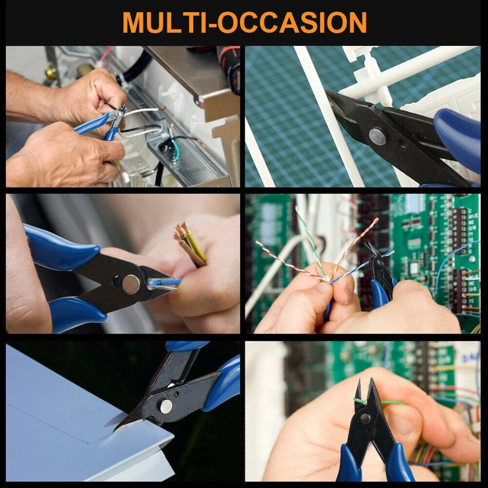 Beschreibung Features: *Exquisite and Comfortable Handle Design:The pliers feature an exquisite handle design that ensures a comfortable grip, making them easy to hold and use for extended periods. The ergonomic design enhances user experience and reduces fatigue during repetitive tasks. *Light Spring Design:Equipped with a light spring, these pliers provide effortless opening and closing, allowing for smooth and efficient cutting. The spring design also helps to minimize hand strain, enabling users to work for longer durations without discomfort. *Oblique and Flat Mouth Design:The pliers are designed with an oblique mouth and flat mouth, precise and clean cuts. The well-aligned jaws make it easy to bite and cut wires as thin as 0.1mm, which is thinner than a hair strand. *Sturdy Material:Crafted from high-speed tool steel, these pliers boast exceptional hardness, reaching up to 58 degrees. This for remarkable hardness enables them to effortlessly cut through various soft wires up to 1.6MM thick and iron wires up to 0.8mm thick. *Versatile Applications:Suitable for cutting wires, electronic feet, trimming plastic products, and handling small wires. They find great utility in the electronics industry for repair work, jewelry processing, model making, and even fishing. Their versatility makes them an essential tool for various purposes and industries. Specifications: *Product Name:Diagonal Plier Cable Cutter *Material:High-speed Tool Steel *Size:About 130*80 mm *Color:Dark Green,Light Green,Black,Red,Yellow,Blue(Optional) *Applications:F or cutting wires, electronic feet, trimming plastic products, and handling small wires Package Content: 1 * Plier Note: 1. The real color of the item may be slightly different from the pictures shown on website caused by many factors such as brightness of your monitor and light brightness. 2. Please allow slight manual measurement deviation for the data. POLICES Shipping Payment WARRANTY We only ship to confirmed ebay Order addresses. Please comfirm that your Order address is in line with your shipping address. Please kindly note that the c ombined shipping is not provided because the shipping fee is calculated by weight. Also, the each additional item means exactly the the same color and size. It takes about 7 -15 working days to US; about 10-30 working days to other countries. Transit time may be a little delayed because of the bad weather and customs inspection . If you do not receive your item within 30 working days since payment finished, please contact us immediately for further assistance. Payment must be completed within 5 days. If you have any problems about payment, please contact us via ebay message. We strive for 100% customer satisfaction! Positive Feedback is very important to us. If you have any questions, p lease feel free to contact us via "Ask seller a question" . We will reply your email within 24 working hours.