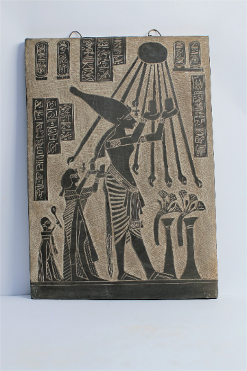 Powered by Frooition replicastatues Handmade Wall Relief of Akhenaten (Aten? Aton) doing Religious prayer Item Description This item is 100% handmade with love and passion by the best sculptors of our family. Brand: EgyptologyStoreEG. Item Description: On this stela replica from El-Amarna, Egyptian King Akhenaten is seen with his wife Nefertiti and their daughters bearing offerings to the sun-disk Aten. Egyptian King Akhenaten, meaning “Effective for Aten”—his name was originally Amenhotep IV, reigned from about 1352 to 1336 B.C.E. In the fifth year of his reign, he moved the royal residence from Thebes to a new site in Middle Egypt, Akhetaten (“the horizon of Aten,” present-day Tell el-Amarna), and there ordered lavish temples to be built for Aten. Akhenaten claimed to be the only one who had access to Aten, thus making an interceding priesthood unnecessary. The cult of the Sun-Disk emerged from an iconoclastic “war” between the “Good God” (Akhenaten), and all the rest of the gods. The outcome of this “war” was the exaltation of the former and the annihilation of the latter. Akhenaten taxed and gradually closed the temples of the other gods; the images of their erstwhile occupants were occasionally destroyed. Cult, ritual and mythology were anathematized, literature edited to remove unwanted allusions. Names were changed to eliminate hateful divine elements; and cities where the old gods had been worshipped, were abandoned by court and government. Ancient sculpture replica from the original one, 100% Egyptian HAND MADE Made from Basalt Stone Height: 15 Inches Width: 10 Inches MADE IN EGYPT Payment: We are currently accepting all payment Methods. Shipping: The items are shipped via DHL express company. Packaging: All the items ordered are 100% securely packaged with utmost efficiency and visually appealing appearance. Return Policy: You can return our product and get a full refund or exchange the product with another one, however the following conditions must be met: 1)Product must be returned within 14 days from the receival date. 2)In case an exchange is made, the shipping costs is paid. 3)Product must be returned in the same condition that it was received in. 4)Product must be returned in its original packaging. More Items! View more great items The Thrilling Pharaoh Owl - The Keen-Sighted Hunters - Handmade Altar statue $90.00 Unique Egyptian Pharaonic cup with amazing color you can use it as a Flower vase $195.00 Rare BLACK Amazing AKHENATEN Mask - Replica Altar statue made from black stone $240.00 Goddess NUT, Goddess of the sky, stars, mothers, astronomy and universe $260.00 Listed by Frooition Frooition | No-js Template | eBay design, eBay store design, eBay shop design, eBay template design, eBay listing design, eBay Listing Tool (ver:froo_no_js)