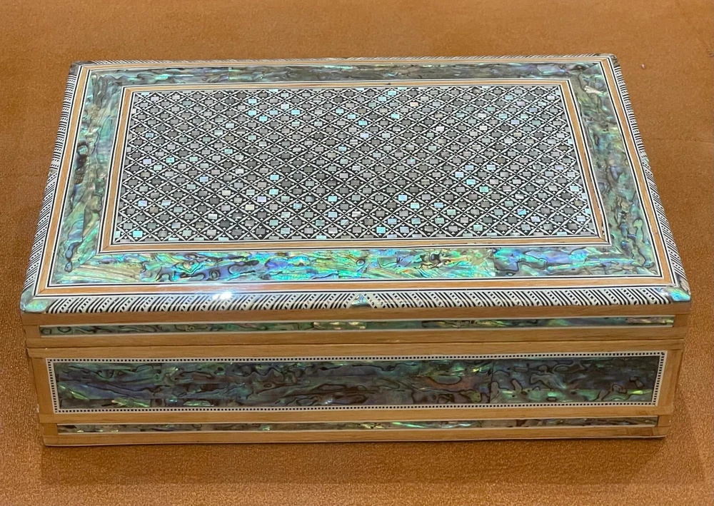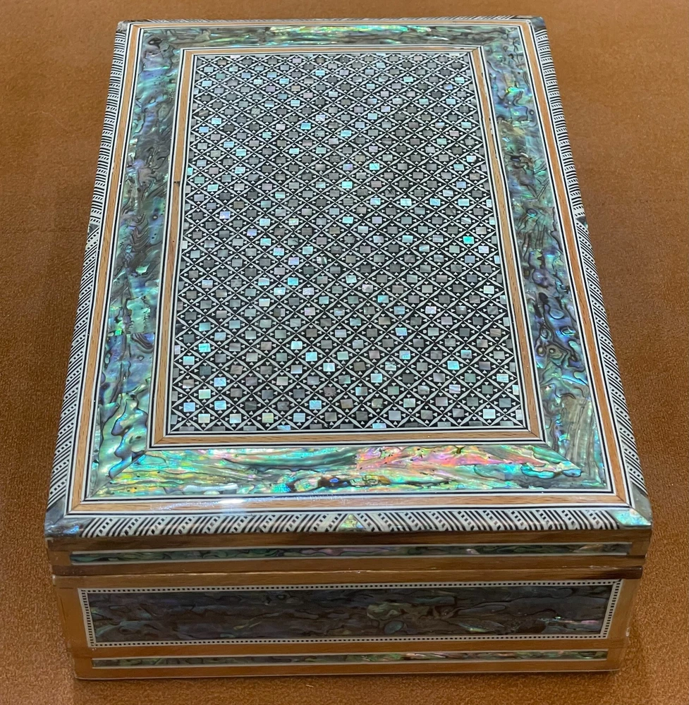 Egyptian Wood Jewelry Box Inlaid Mother of Pearl Handmade size 11.8" x 8" x 3.5" inch These boxes hand-made in Egypt by Egyptian creative Artists Using inlaid Mother of Pearl and Beech Wood Shipping via DHL Shipping Combined package : Accepted according the weight and size\ Shipping : 7 to 12 days by DHL express with track number We ship within Three business days of payment, usually sooner. Return You can return a product for up to 30 days from the date you purchased it. Any product you return must be in the same condition you received it and in the original packaging. Please keep the receipt. Payment We accept payment by any of the following methods: PayPal Please pay as soon as possible after winning an auction, as that will allow us to post your item to you sooner! Feedback Customer satisfaction is very important to us. If you have any problem with your order, please contact us and we will do our best to make you satisfied. Contact Us If you have any queries, please contact us via ebay. We usually respond within 24 hours on weekdays. Please visit our eBay store to check out other items for sale! Thank you for shopping at our store. Egyptian jewelry box , Mother of pearl jewelry box , Jewelry box