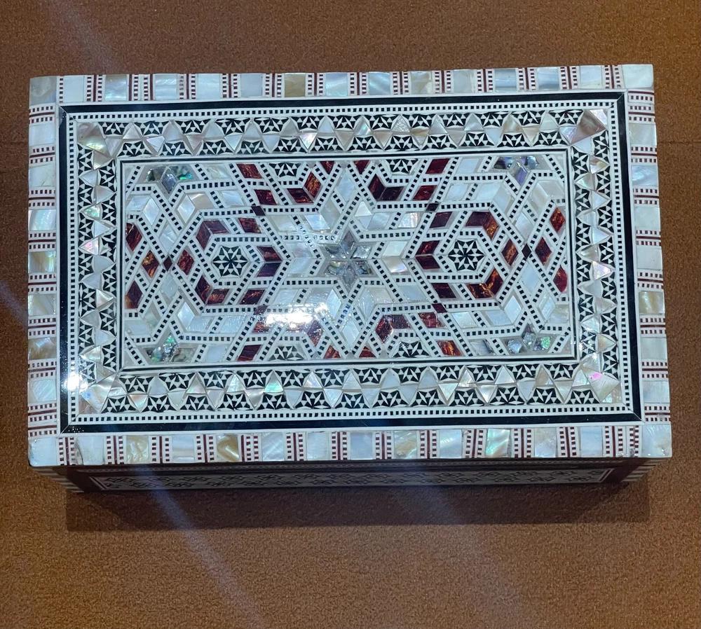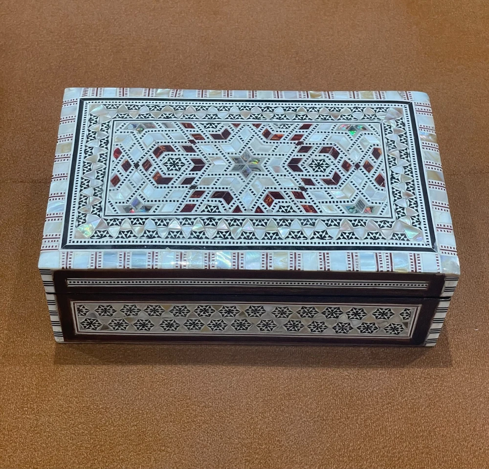 Egyptian Wood Jewelry Box Inlaid mother of Pearl Handmade 8"