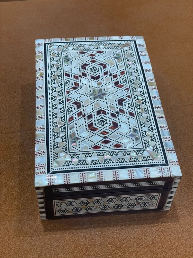 Egyptian Wood Jewelry Box Inlaid Mother of Pearl Handmade size 8" x 5" x 2.2" inch These boxes hand-made in Egypt by Egyptian creative Artists Using inlaid Mother of Pearl and Beech Wood Shipping via DHL Shipping Combined package : Accepted according the weight and size\ Shipping : 7 to 12 days by DHL express with track number We ship within Three business days of payment, usually sooner. Return You can return a product for up to 30 days from the date you purchased it. Any product you return must be in the same condition you received it and in the original packaging. Please keep the receipt. Payment We accept payment by any of the following methods: PayPal Please pay as soon as possible after winning an auction, as that will allow us to post your item to you sooner! Feedback Customer satisfaction is very important to us. If you have any problem with your order, please contact us and we will do our best to make you satisfied. Contact Us If you have any queries, please contact us via ebay. We usually respond within 24 hours on weekdays. Please visit our eBay store to check out other items for sale! Thank you for shopping at our store. Egyptian jewelry box , Mother of pearl jewelry box , Jewelry box