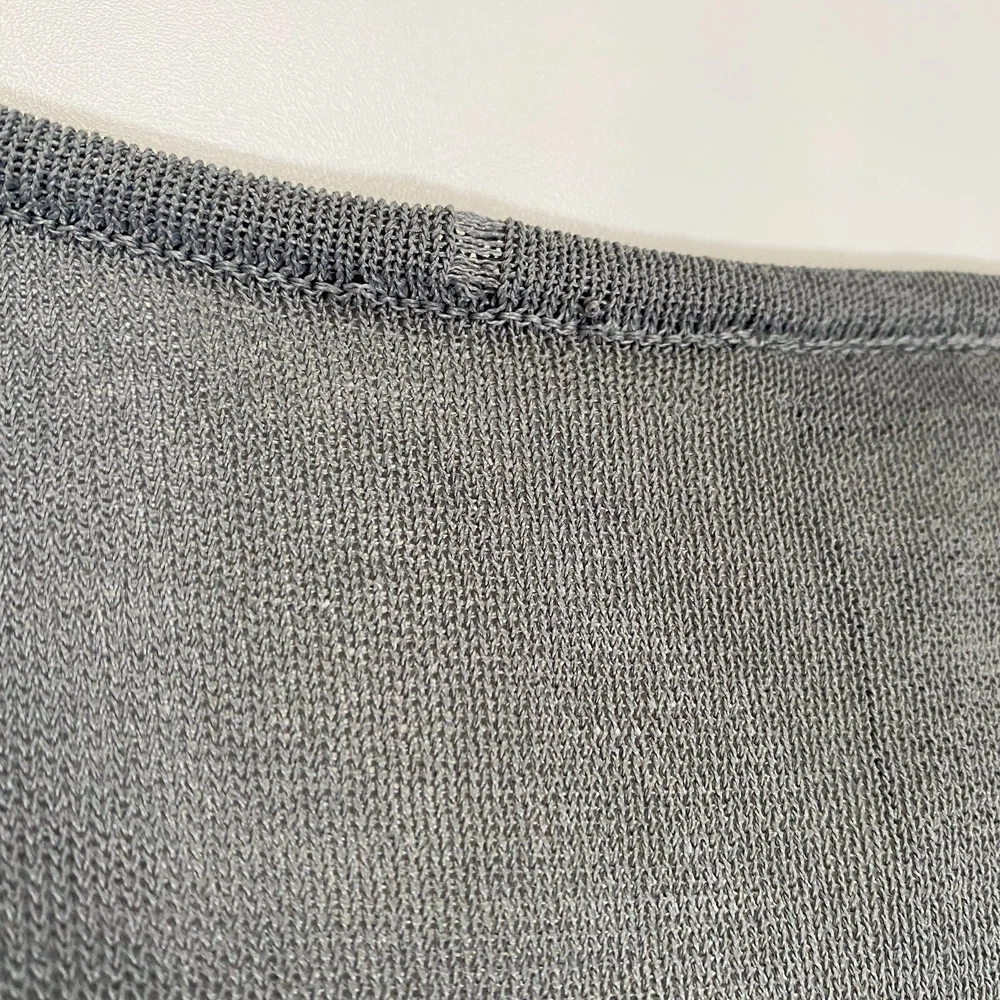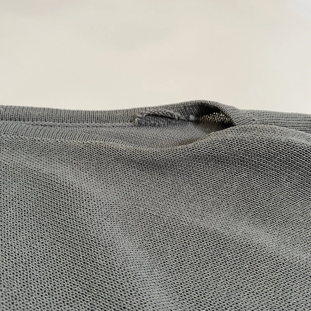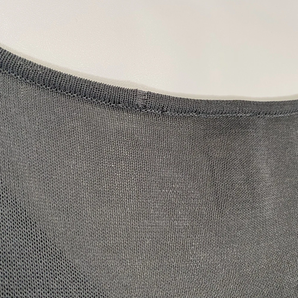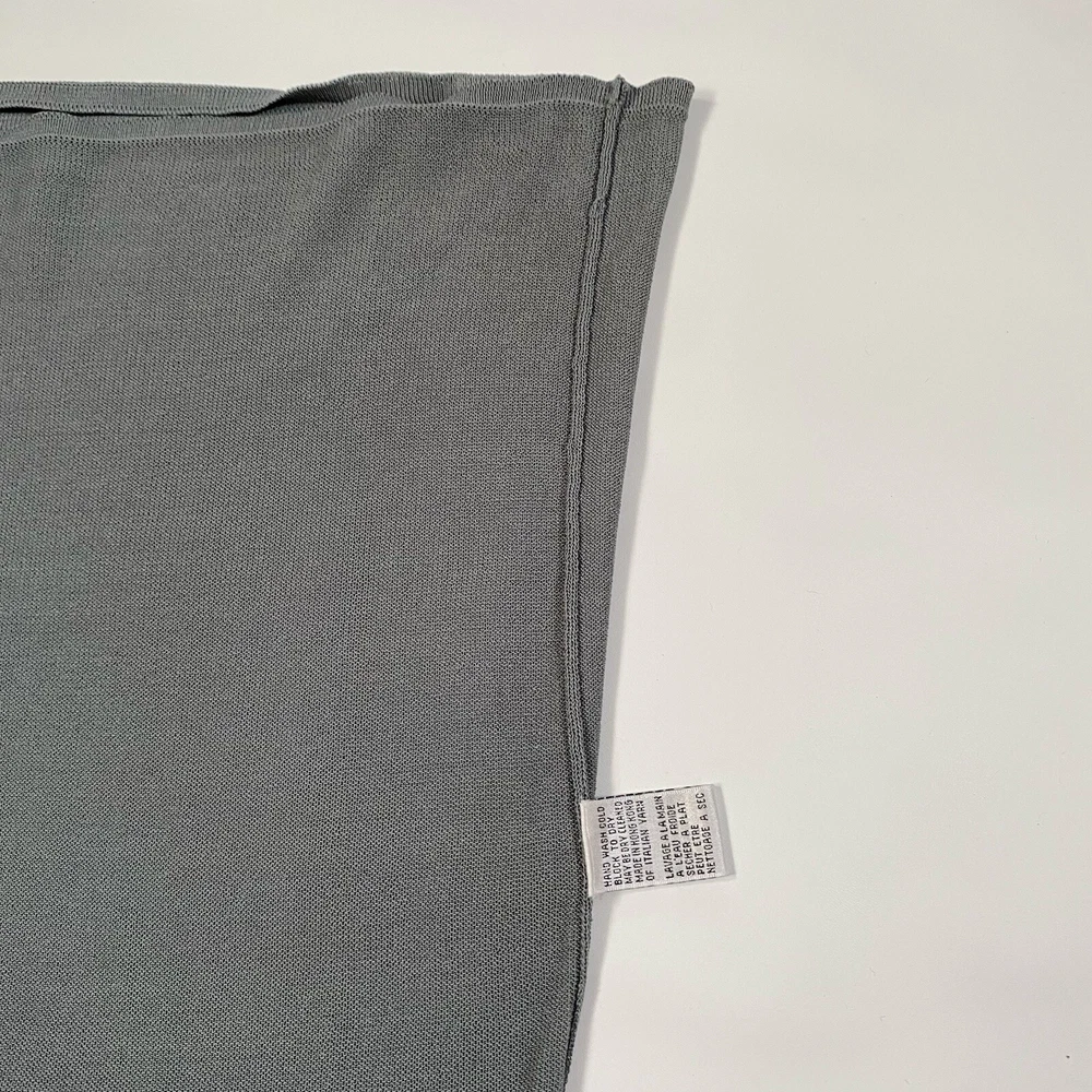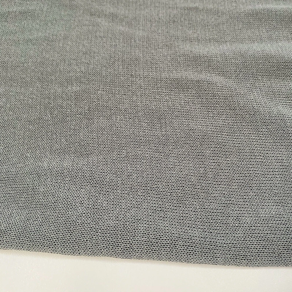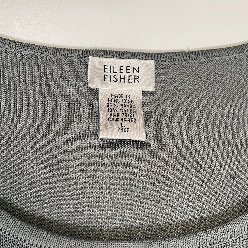 Eileen Fisher tank top in size Large with a scoop neck and sleeveless design The top is made of woven textured rayon material in a gray-blue color. It is a lightweight and breathable piece, suitable for casual wear in summer, fall, and spring. The wide strap tank has a basic style and a designer, classic theme, perfect for a versatile wardrobe.