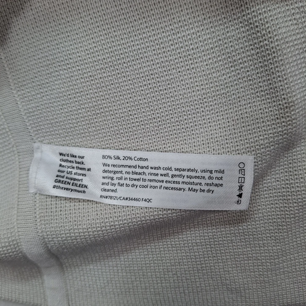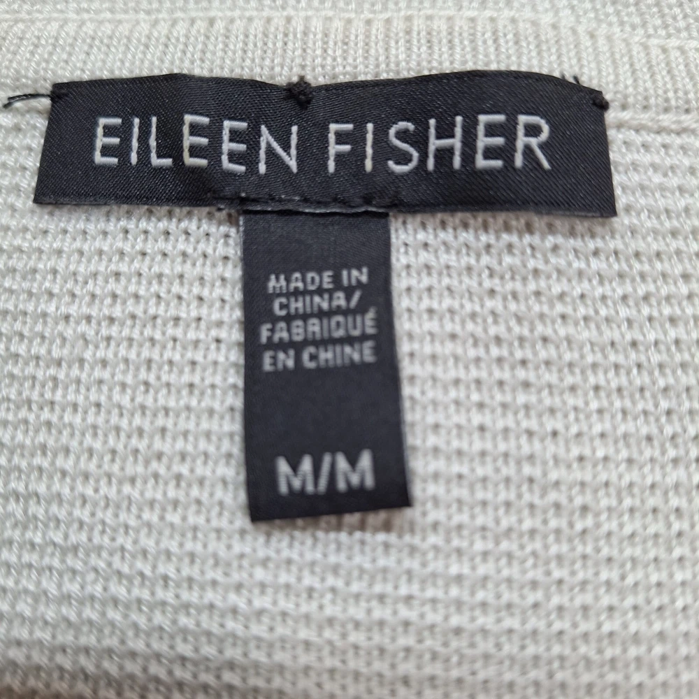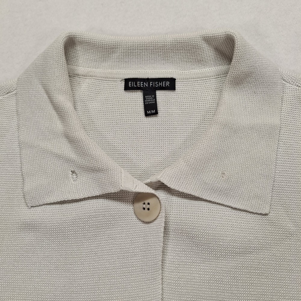 Eileen Fisher Silk Blend Long Duster Cardigan Medium Cream Button Front Pockets pit to pit 19" length 32"