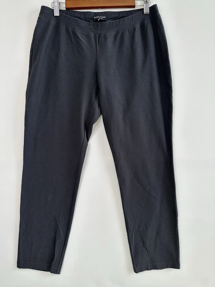 Eileen Fisher Stretch Crepe Slim Fit Pull On Ankle Pants 78121 Size Small Petite Charcoal Gray Very good pre-owned condition. Measurements approximate laying flat: Waist 14.5" Rise 8.5" Inseam 27"