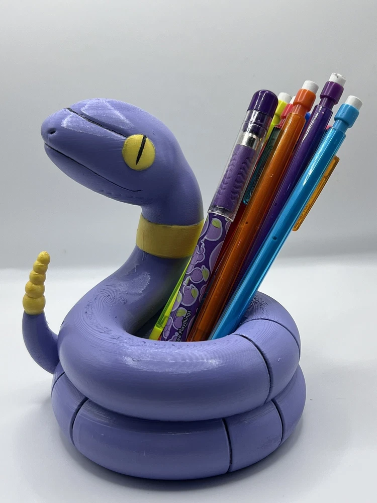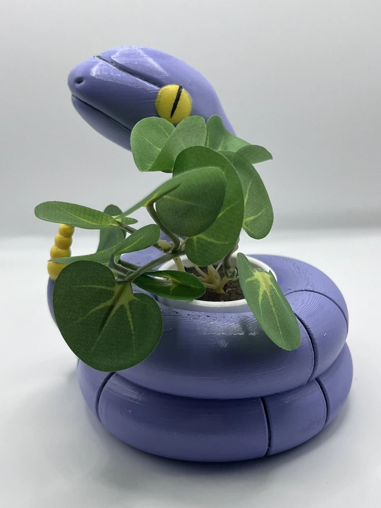 3D printed and hand painted Ekans planter or desk cup. Printed with PLA+. Dimensions can be seen in the photos. You get the exact item in the photos! Plant and pens are NOT included! Each planter/cup is sealed with a coat of clear coat. If you have any questions, feel free to message me. Disclaimer: These are hand painted by myself, personally. I am by no means a professional painter. They are not perfect and may have flaws with the painting. You are supporting a person on disability looking for a hobby to keep themselves busy. So thank you for understanding and supporting my hobby! You get the exact item in the photos. Each time they are listed, new photos are uploaded as each one is unique and never painted or printed exactly the same. I try to always get your items out the same or next day! I pack them with care so they reach you intact. Check my other listings for other 3D printed planters!
