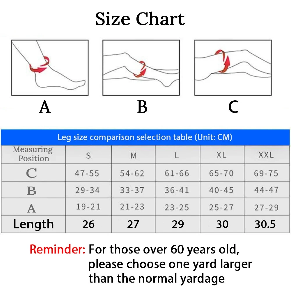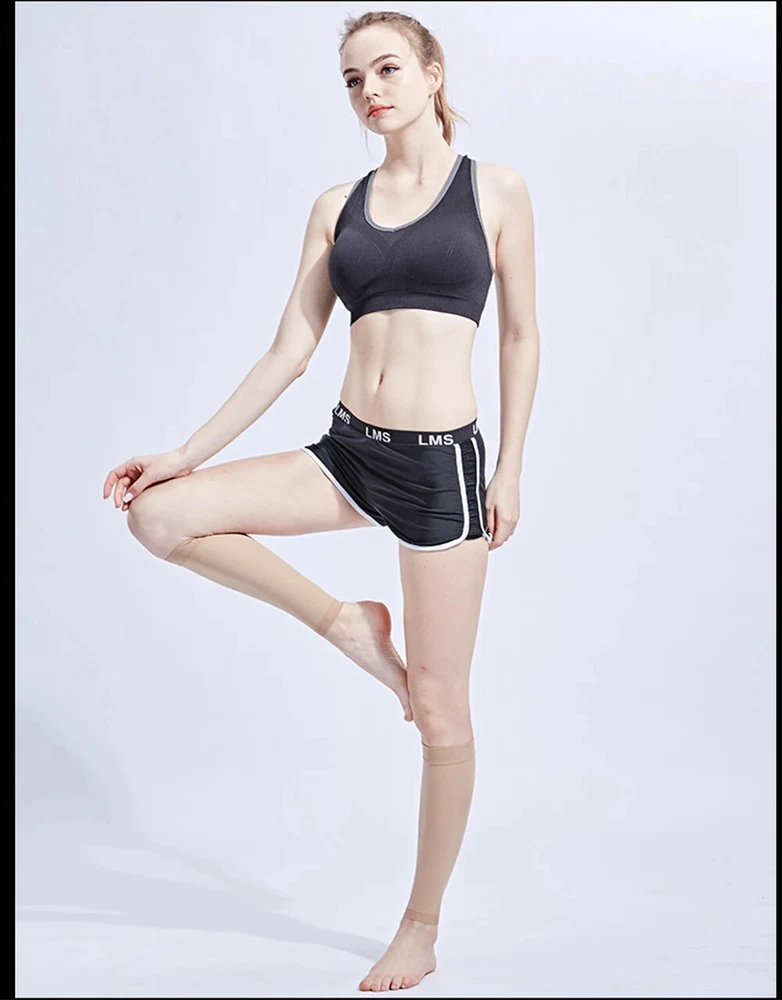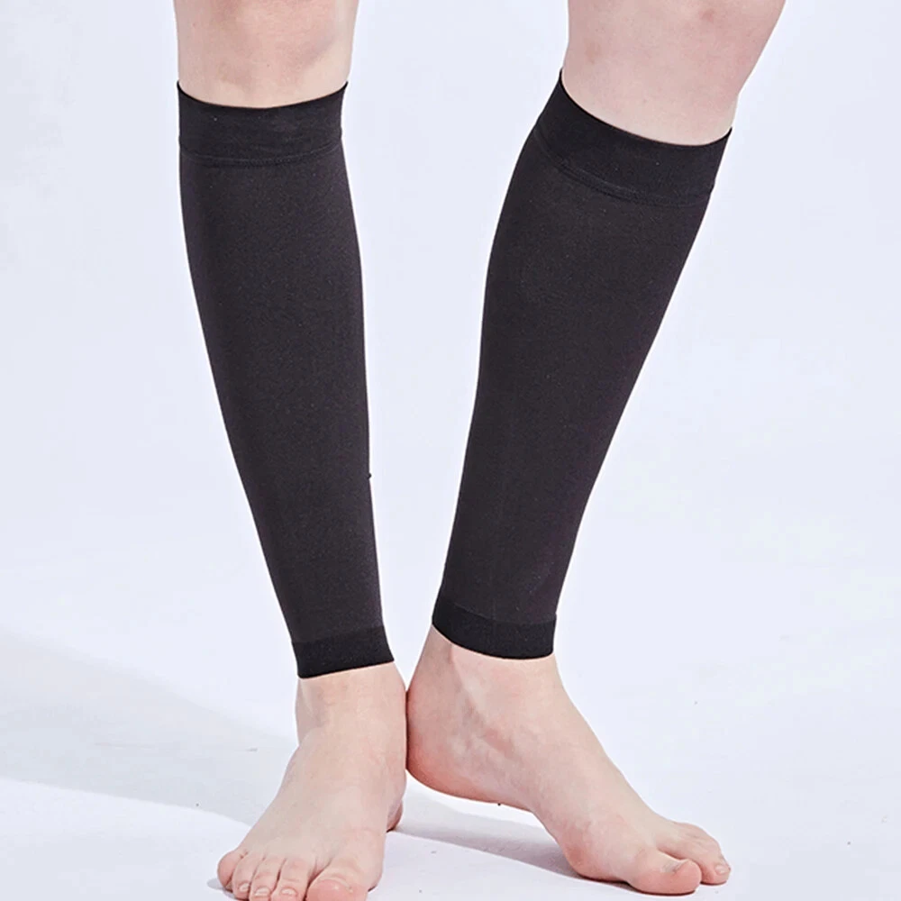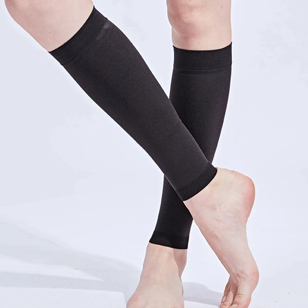 About the product: 1. Functions: 21-32 mmhg secondary pressure Calf Compression Sleeves Get your blood circulating. Great for relief of varicose veins, shin splints, calf compression, calf cramps or other leg swelling issues. Prevent blood clots after surgery and fits well unlike other doctor prescribed stiff varieties. These sleeves allow you to recover faster & feel stronger. 2. Size: S/M/L/XL/XXL, suitable for calf circumference between 25-45cm/9.8-18inch, fits unisex. Discreet and stylish design for walking, sitting, standing, travel and all attire from casual to work, dress or formal. 3. Multi applications: used for fatigue, pain, stiffness, soreness, swelling, cramps, shin splints, varicose veins, lymphedema, phlebitis, DVT (deep vein thrombosis), blood clots and plantar fasciitis. 4. Comfortable material - Made of durable, lightweight, breathable, high-quality lycra materials and superior moisture wicking yarns for ultimate comfort and breathability. Painstakingly measured to ensure an exact fit, they fit just right on your calf, not too tight, they're so comfortable that you'll forget you have them on! 5. Daily use and many activities - Our calf compression sleeves are ideal for daily use especially for people in retail, nursing, travel, hospitality & jobs that require you to be on your feet a lot. They are also perfect for running, walking, cycling, basketball, baseball, volleyball etc. Multi applications: Used for fatigue, pain, stiffness, soreness, swelling, cramps, shin splints, varicose veins, lymphedema, phlebitis, DVT (deep vein thrombosis), blood clots and plantar fasciitis. Daily use and many activities Our calf compression sleeves are ideal for daily use especially for people in retail, nursing, travel, hospitality & jobs that require you to be on your feet a lot. They are also perfect for running, walking, cycling, basketball, baseball, volleyball etc. Details: Gender: unisex. Condition: 100% new Item type: Calf Compression Sleeve Material: lycra Color: black/beige Secondary pressure: 30-40mmhg Applicable season: spring, summer, autumn, winter. Size: S--- Calf max circumference: 26.5-37cm/10.4-14.6inch Leg max circumference: 39-55/15.4-21.7inch Naked min circumference : 16.5-20.5cm/6.5-8inch M --- Calf max circumference: 29-39.5cm/11.4-15.6inch Leg max circumference: 44.5-61cm/17.5-24inch Naked min circumference : 20.5-24.5cm/8-9.6inch L --- Calf max circumference: 32-43cm/12.6-16.9inch Leg max circumference: 49.5-66cm/19.5-26inch Naked min circumference : 24.5-28cm/9.6-11inch XL --- Calf max circumference: 34.5-44.5cm/13.6-17.5inch Leg max circumference: 56-71cm/22-28inch Naked min circumference : 28-32cm/11-12.6inch XXL --- Calf max circumference: 36-47cm/14.2-18.5inch Leg max circumference: 61-76cm/24-30inch Naked min circumference : 32-36cm/12.6-14.2inch Suggestion: Due to the poor pressure and high sensitivity of the older, the older above 45 years old please choose large size than your normal wearing size. Package include: 1Pair * Medical Calf Compression Sleeves The best of health! When you receive the parcel, if the product has problems, please don't give bad review. Simply contact us promptly and we will help you solve.